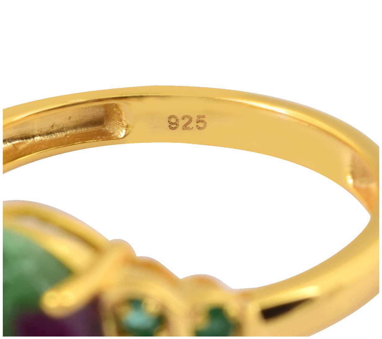 This unique ring will make people green with envy! The oval-shaped ruby zoisite gemstone with emerald accents is an attention-grabber and perfect for those who love the color green.