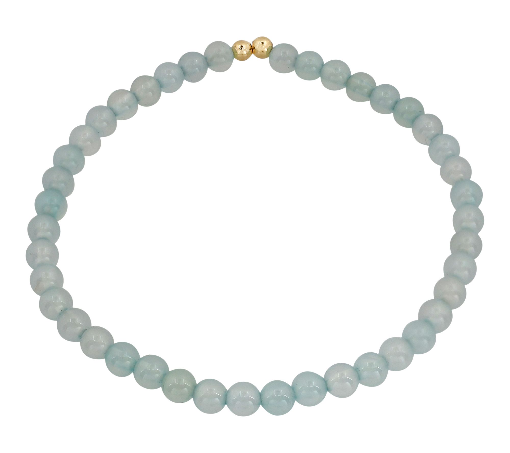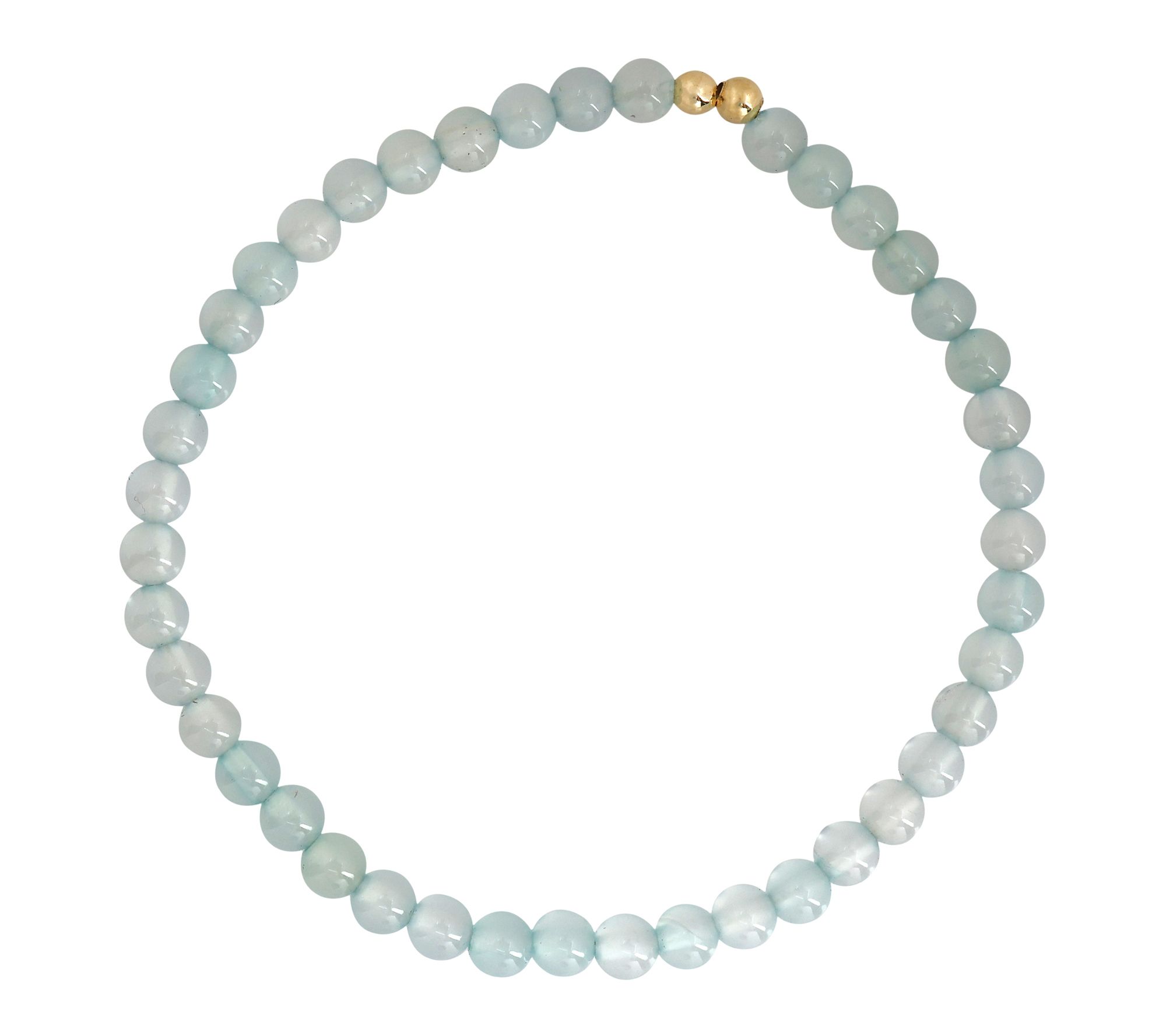 • Stretch bracelet design; aqua-colored chalcedony round beads; 14K yellow gold-plated sterling silver ball accents