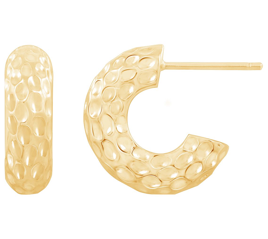 Hardware update! A chunky hammered design gives these everyday hoops in 14K gold-plated sterling silver a truly fresh vibe.