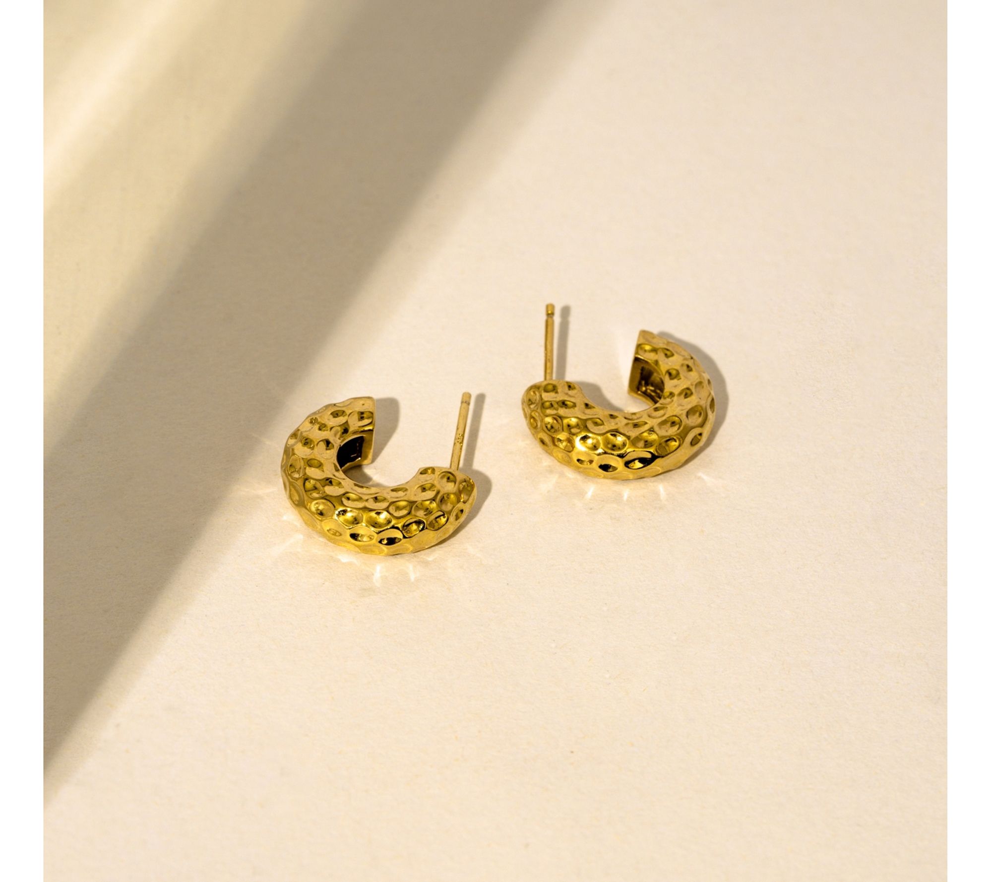 14K Gold Plated Chunky Hammered Hoop Earrings