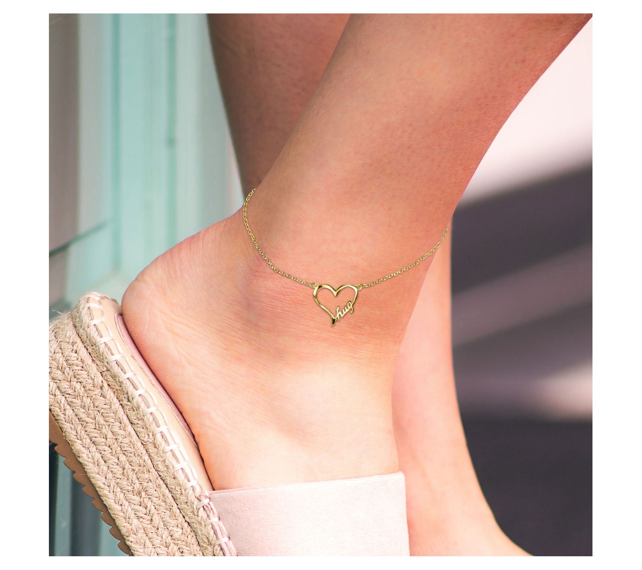 It's like a sweet hug you can wear, this adjustable ankle bracelet features a beautiful open heart frame hung from a 14K yellow gold-plated sterling silver rolo chain.