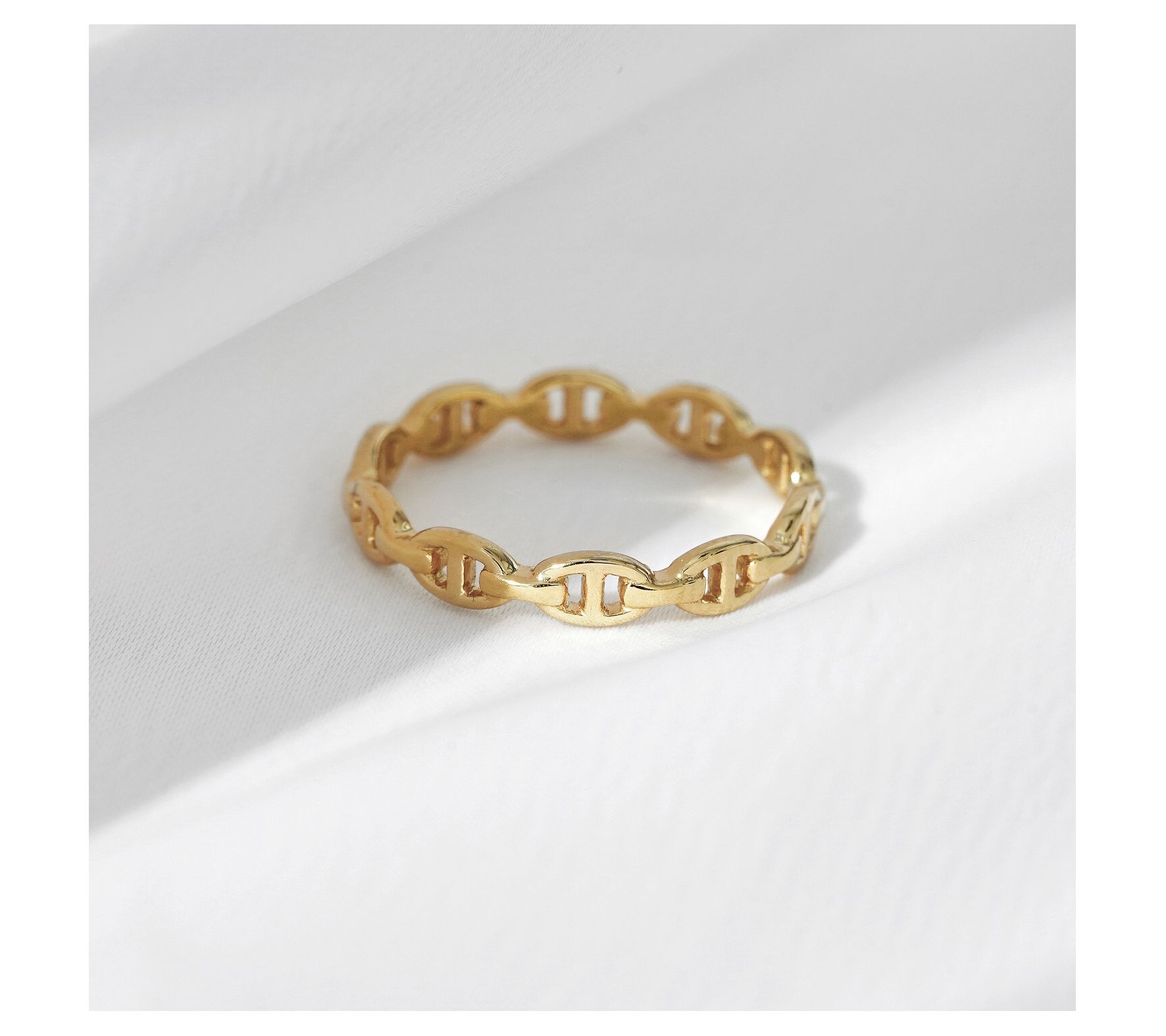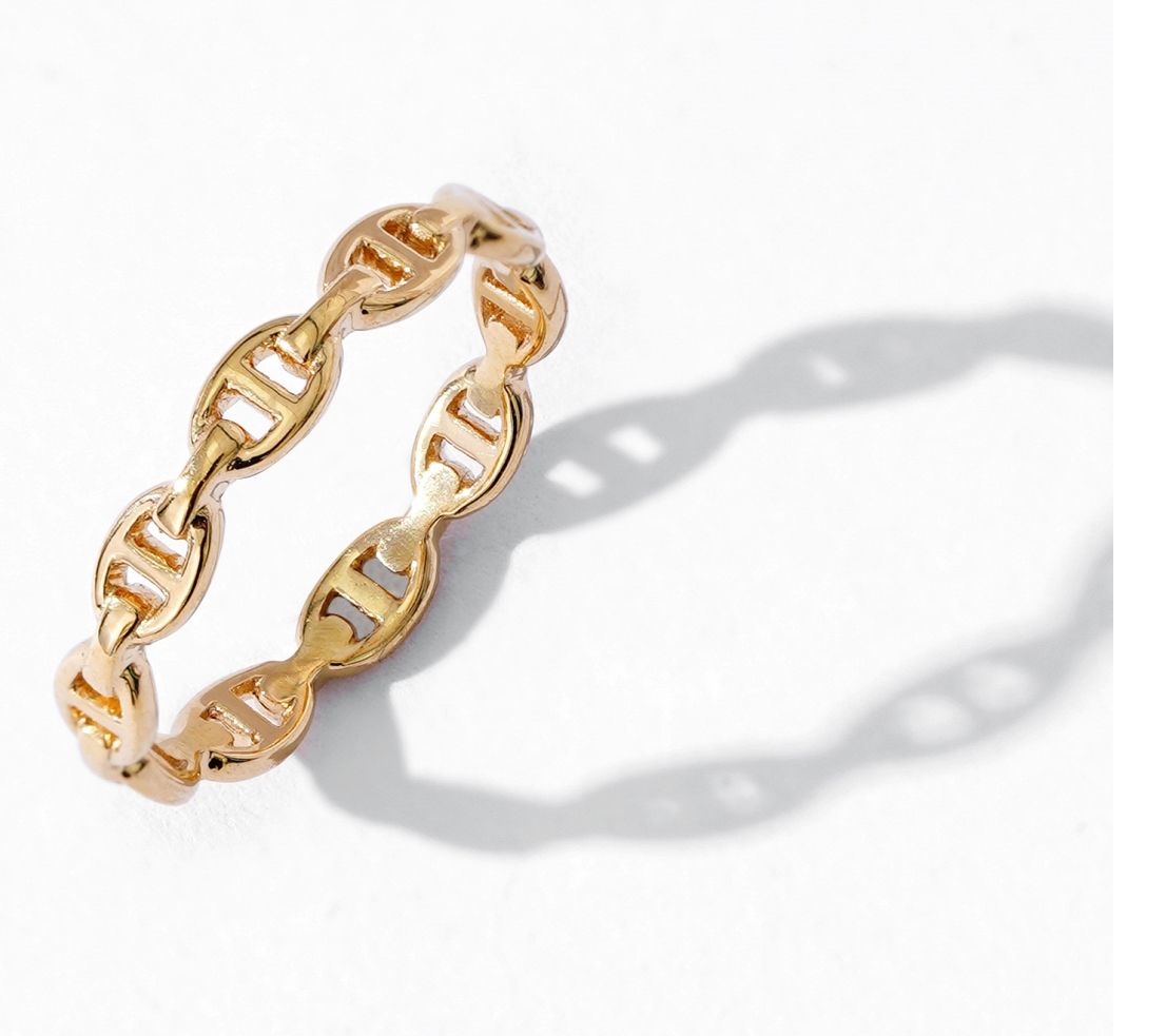 An updated marine link design in high-shine 14K yellow gold-plated sterling silver, this versatile ring feels fresh and sophisticated. Gift it to your favorite ring collector!
