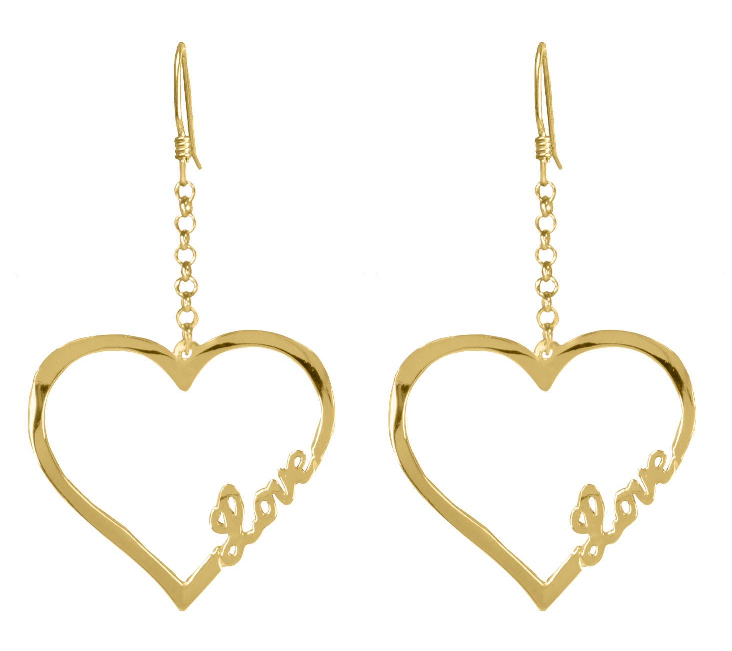14K Gold Plated Open Heart "Love" Drop Earrings
