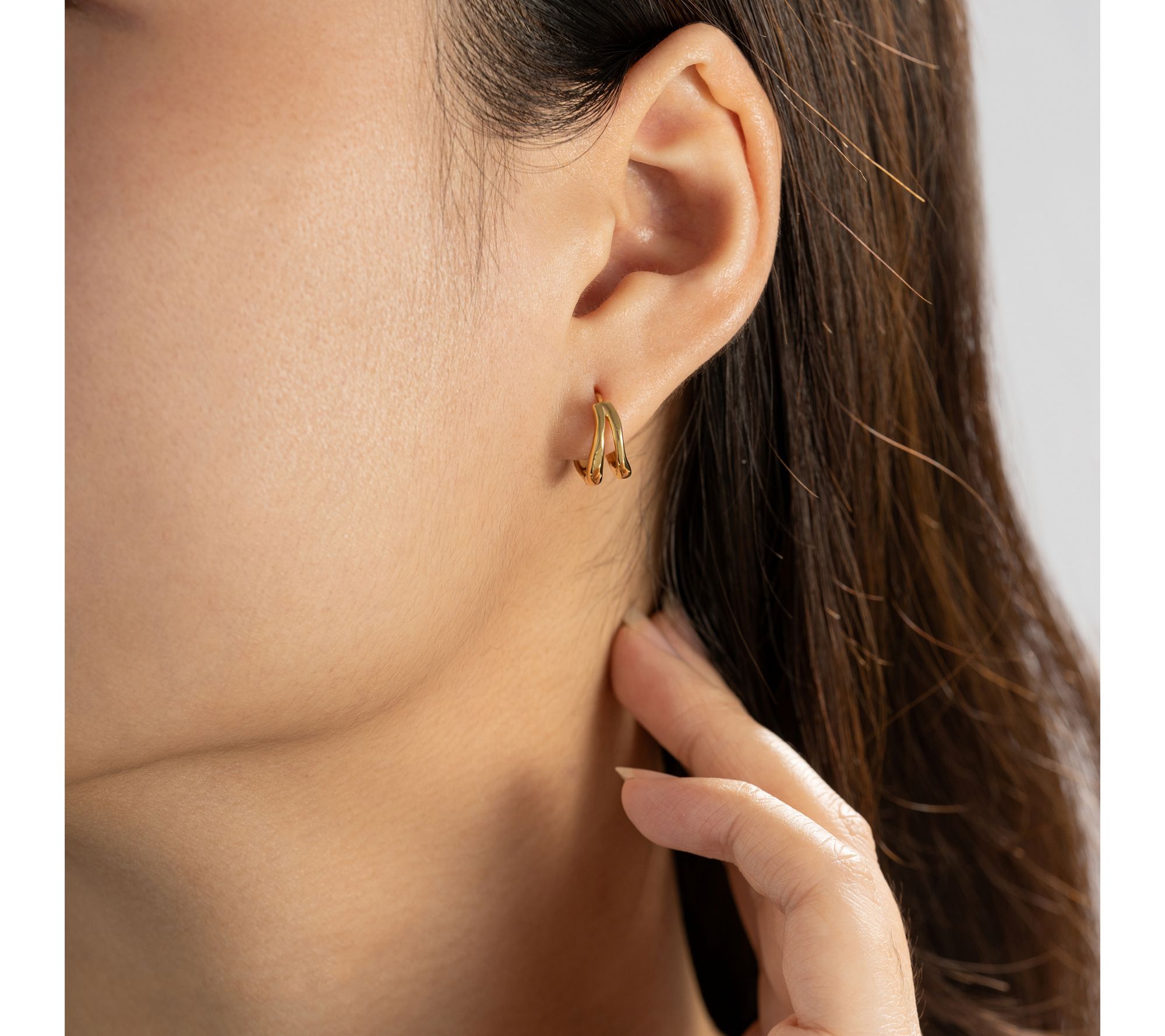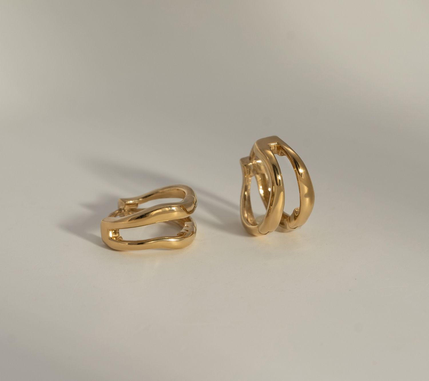 The wavy, organic-like design of these high-shine hoops complements boho dresses, vintage denim, and romantic floral blouses.