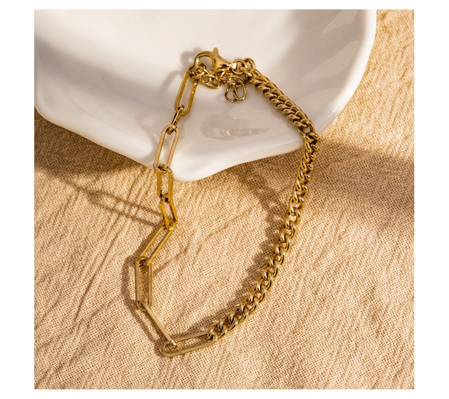 A chic blend of paperclip and curb chain links, this bracelet is designed to capture the light (and compliments!).