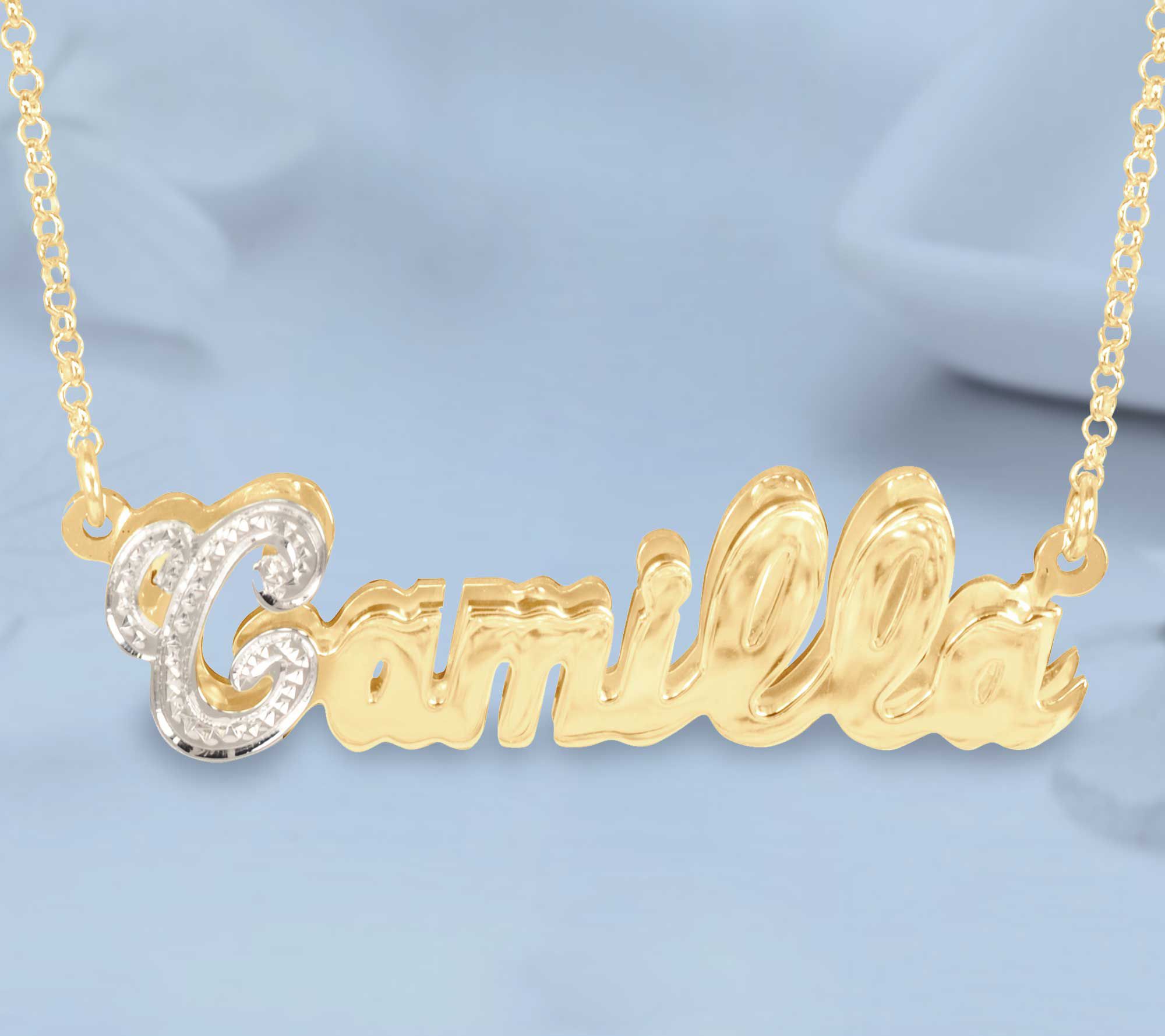 14K Gold Plated Personalized Diamond Cut Namepl ate Necklace