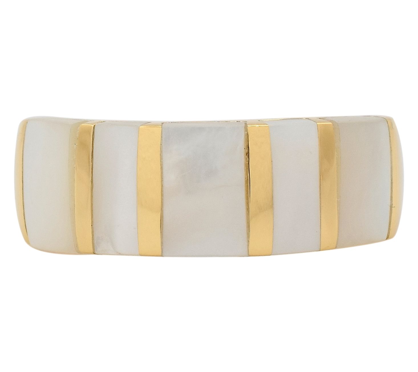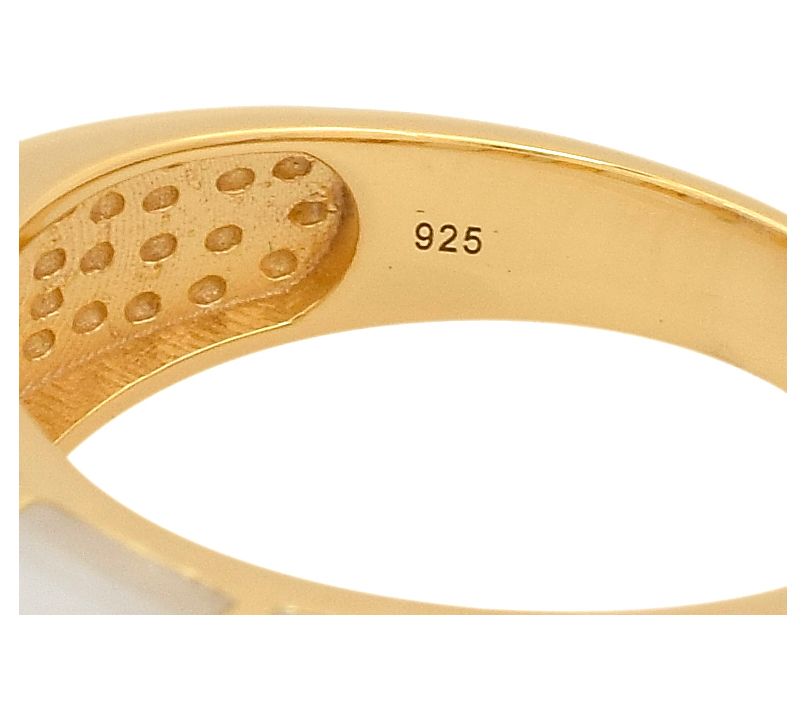 Add a dash of chic edge to your everyday look with this shell band ring -- ideal for stacking with your favorite pieces or letting it shine solo on a weekend brunch outing. The radiant gold-plating adds warmth and a hint of vintage flair, making it a versatile choice for both laid-back and dressy moments. From brand name.