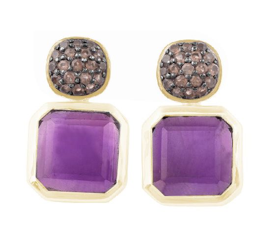 Need a look finisher? Octagon-cut amethyst earrings with blingy smokey quartz up the elegance of even the simplest dress or pant suit.