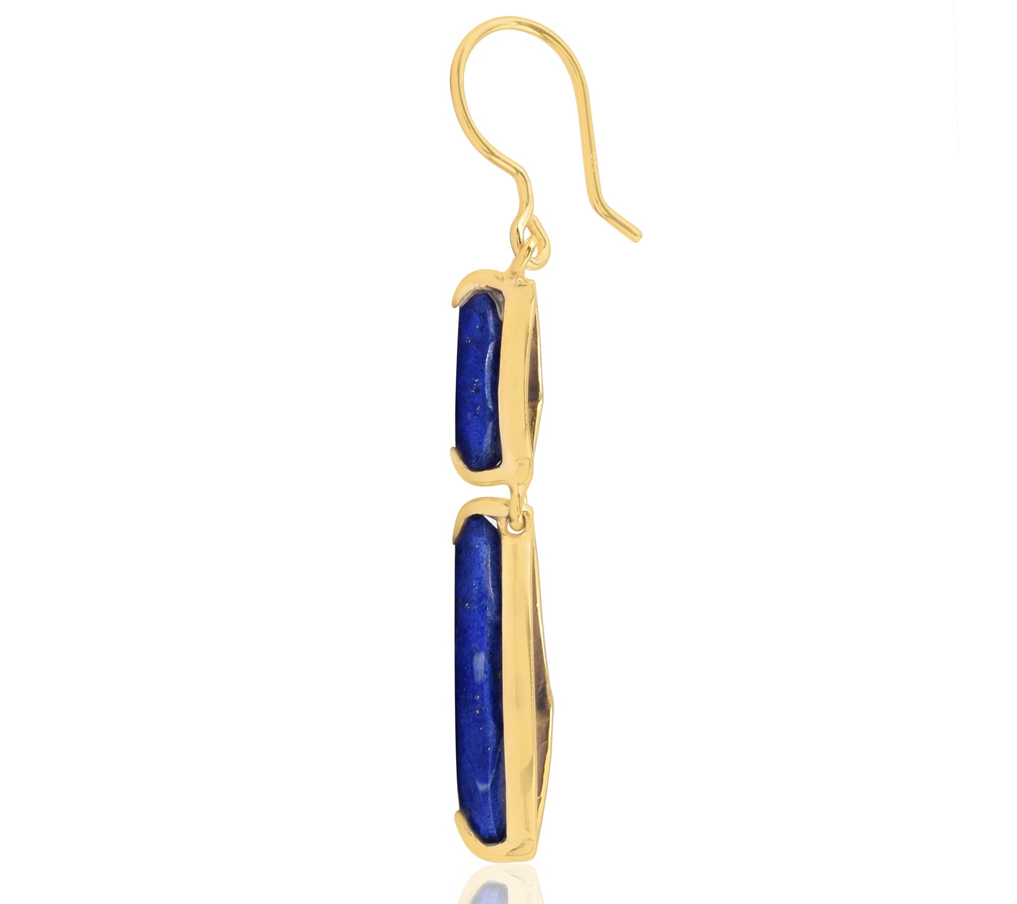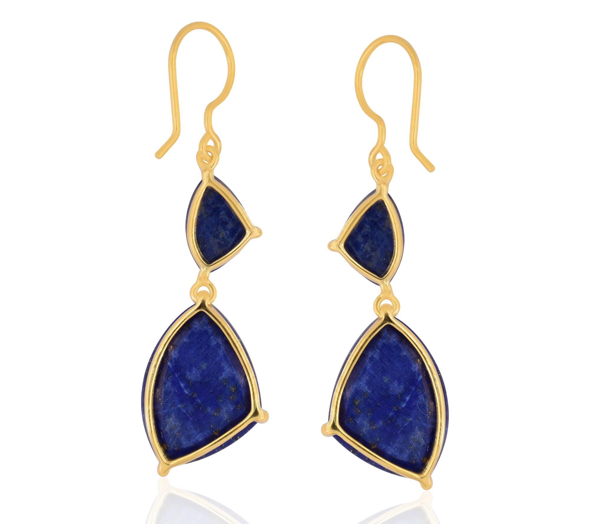 • Freeform-shaped, prong-set lapis lazuli gemstones in a dangling design