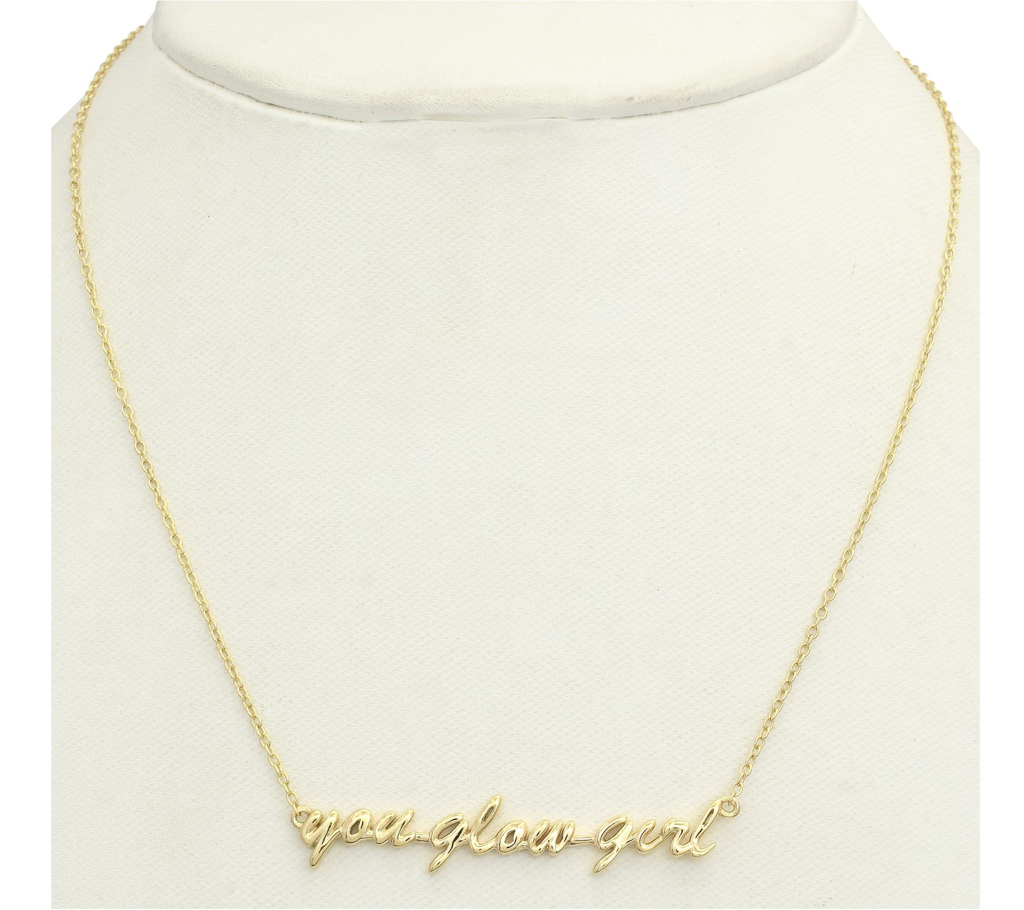 • Oval link chain; "you glow girl" script drop