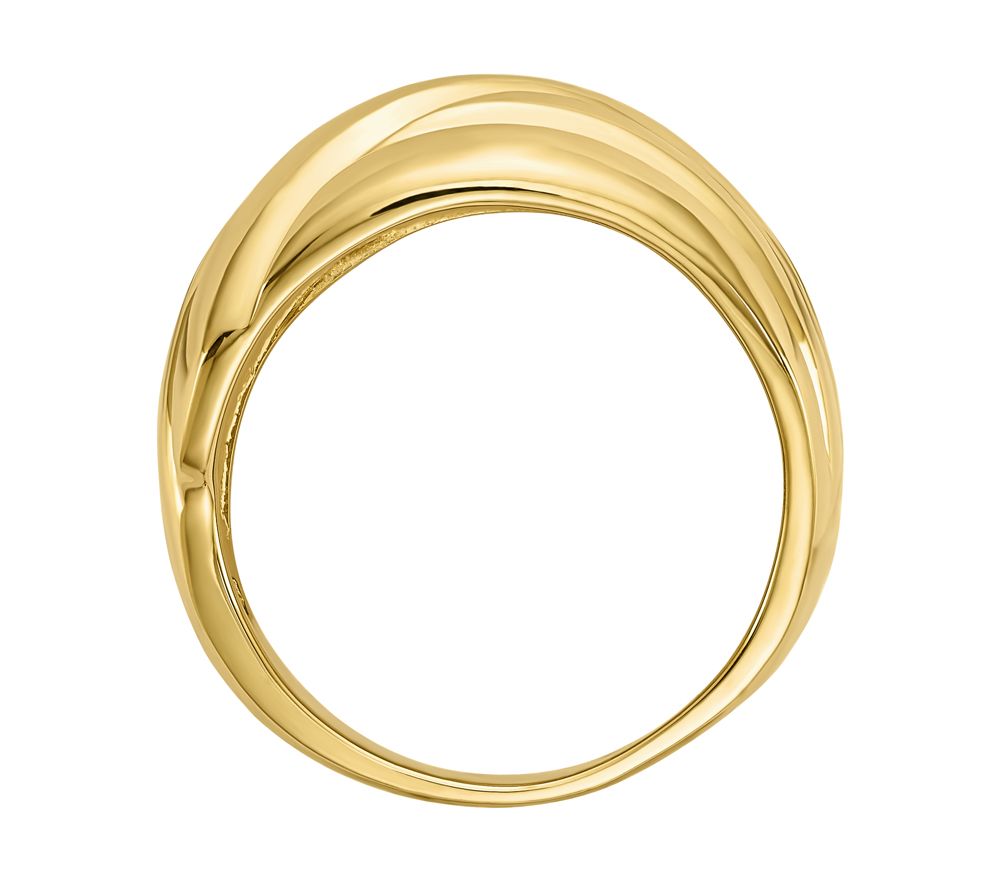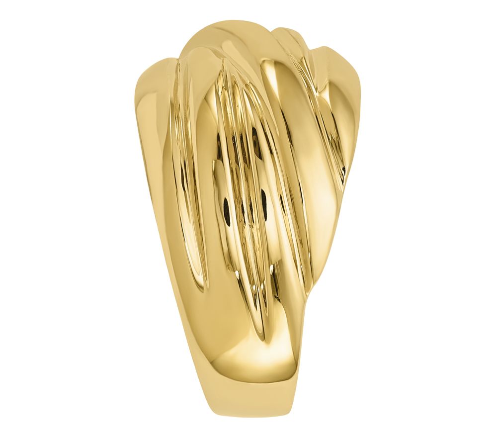 14K Gold Ribbed Crossover Dome Ring