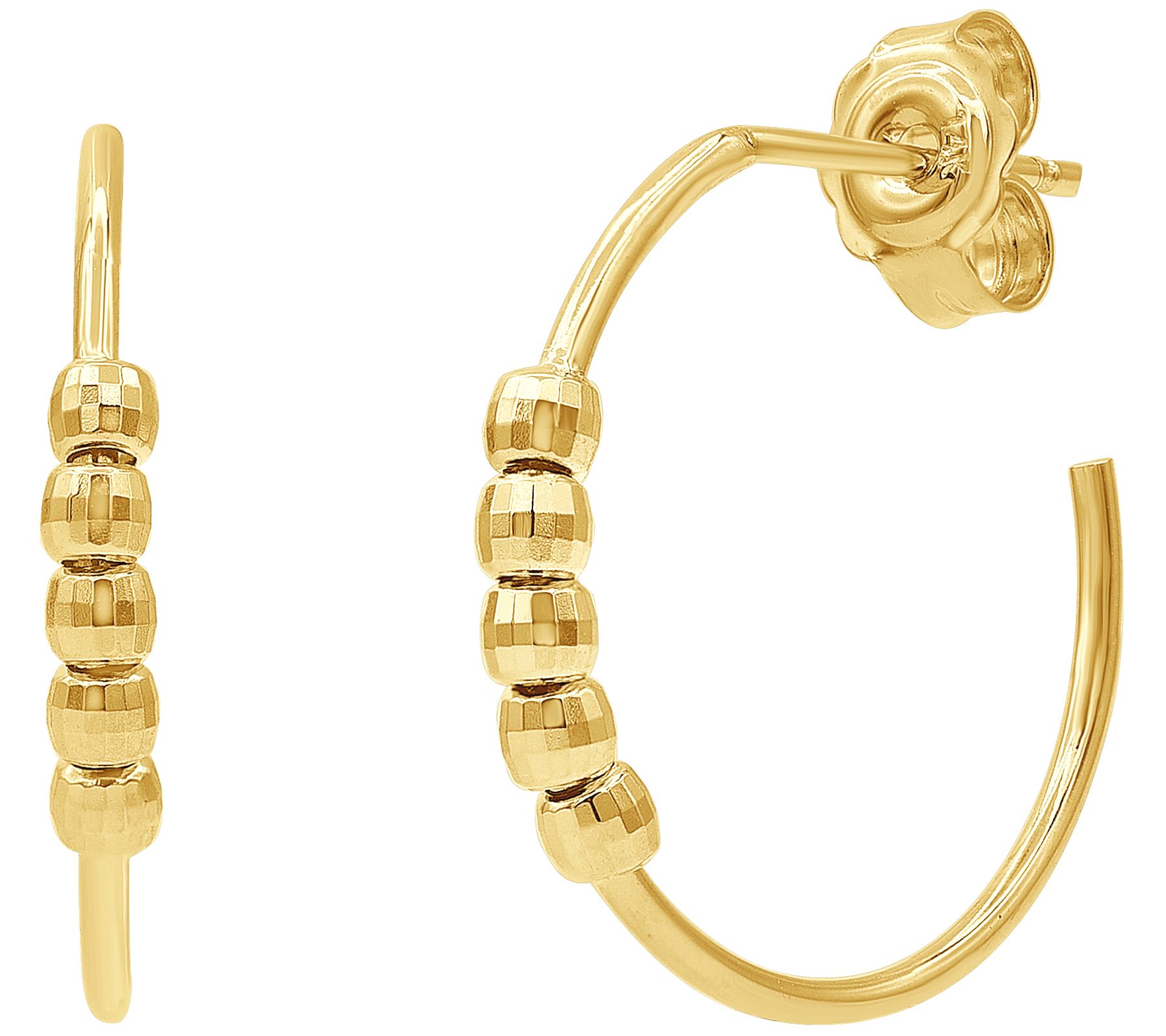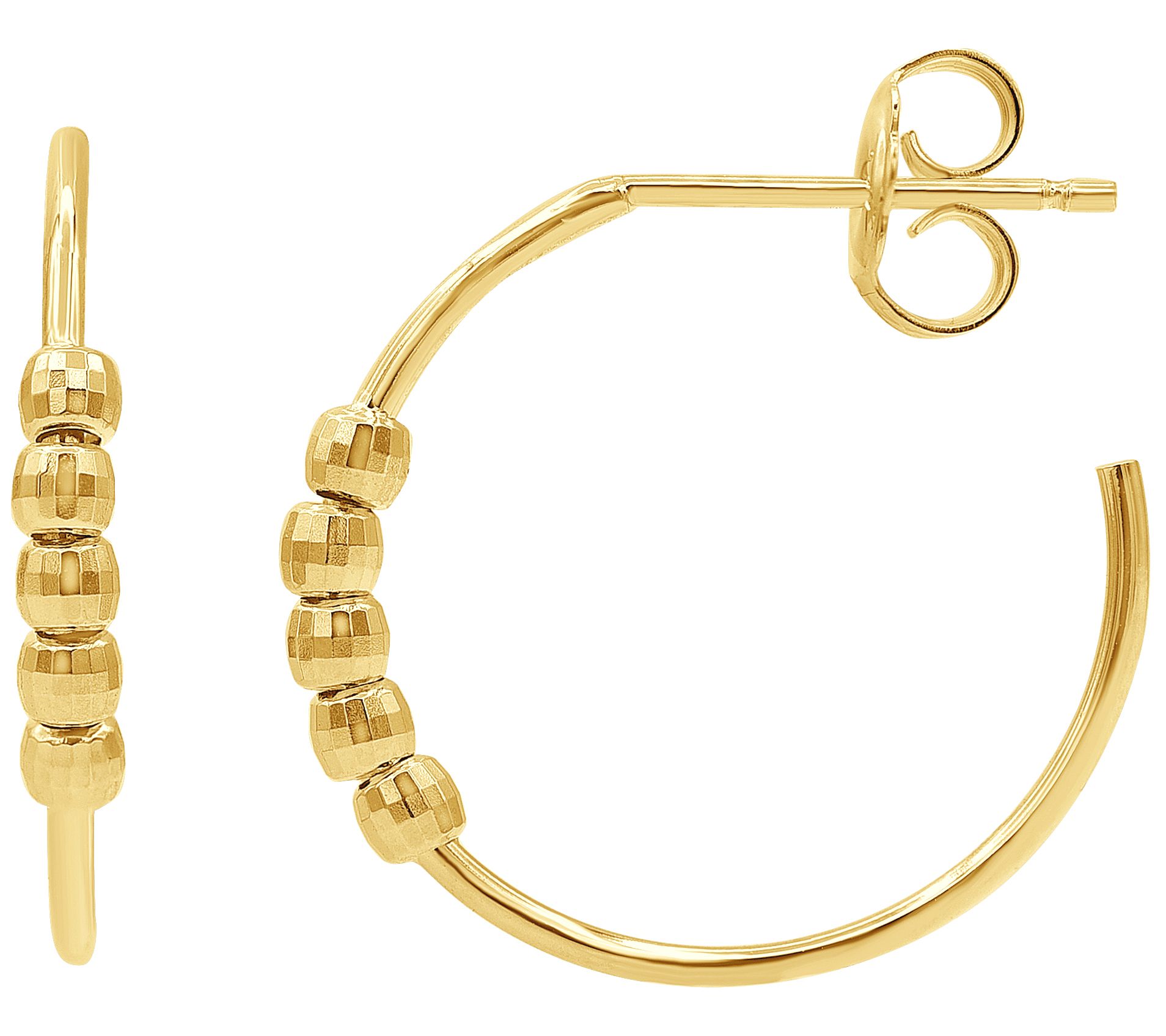 14K Gold Textured Beaded Hoop Earrings