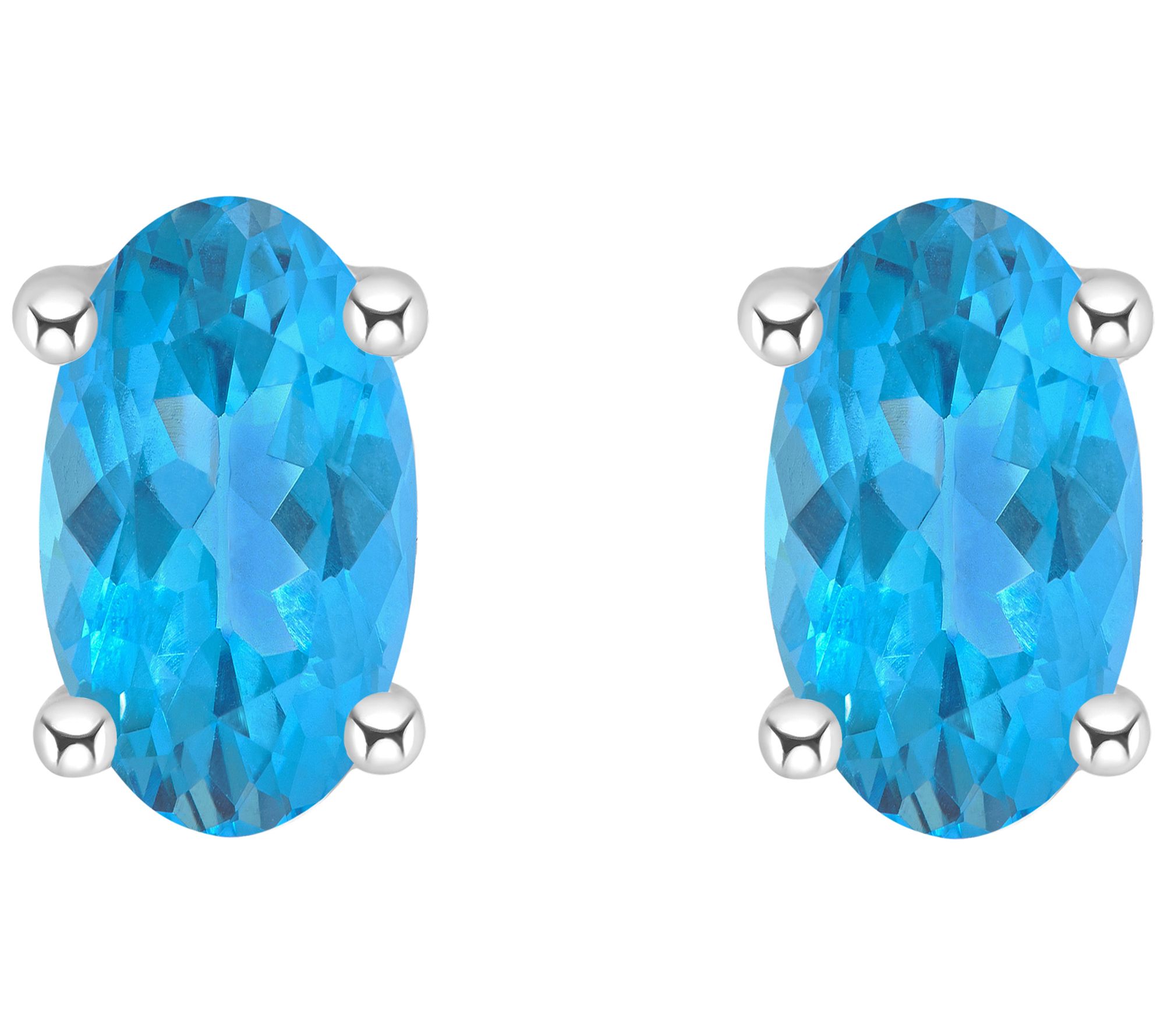 The elongated oval cut of these striking blue topaz stud earrings lends a simple sophistication to any look.