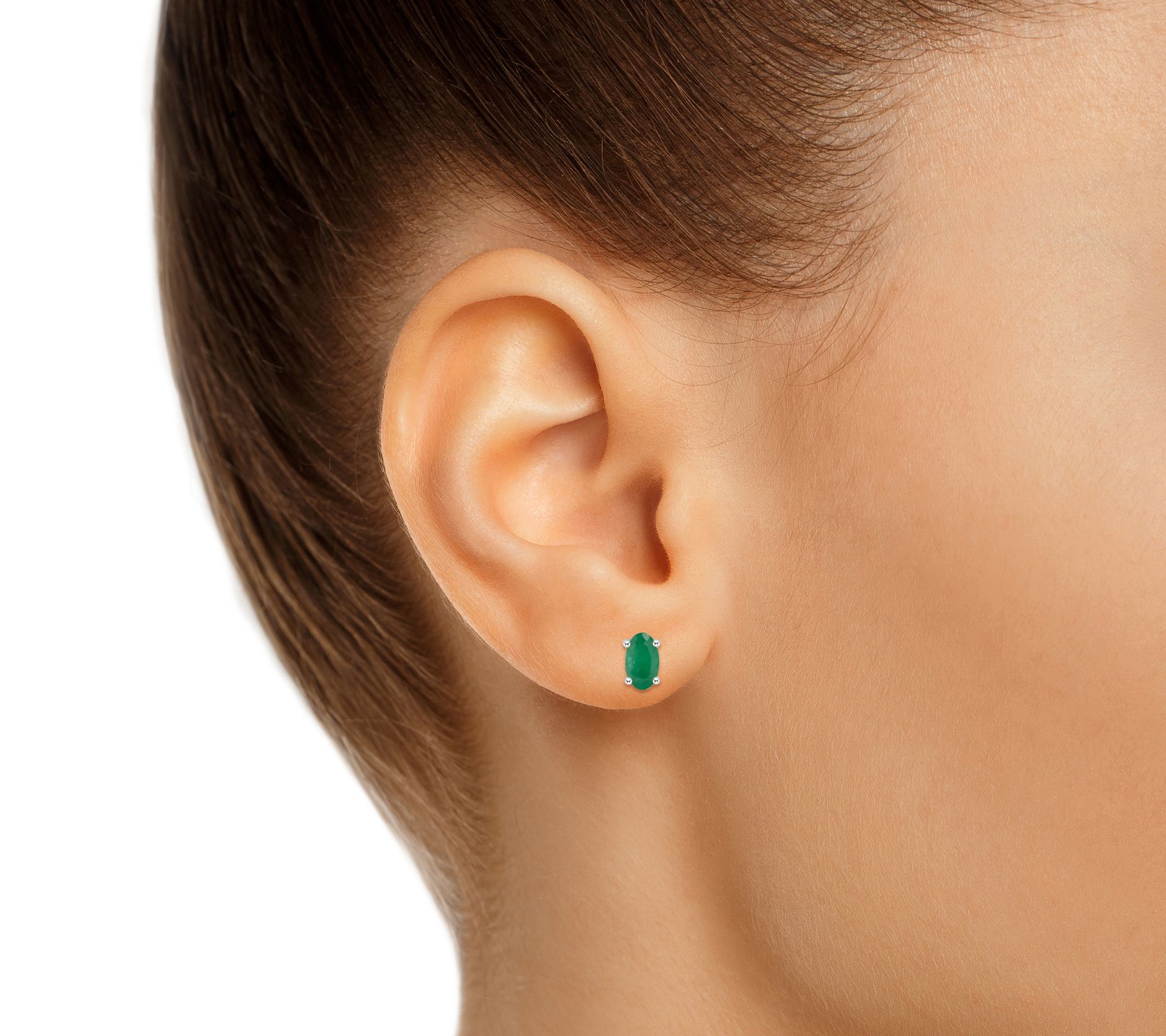 The elongated oval cut of these striking emerald stud earrings lends a simple sophistication to any look.