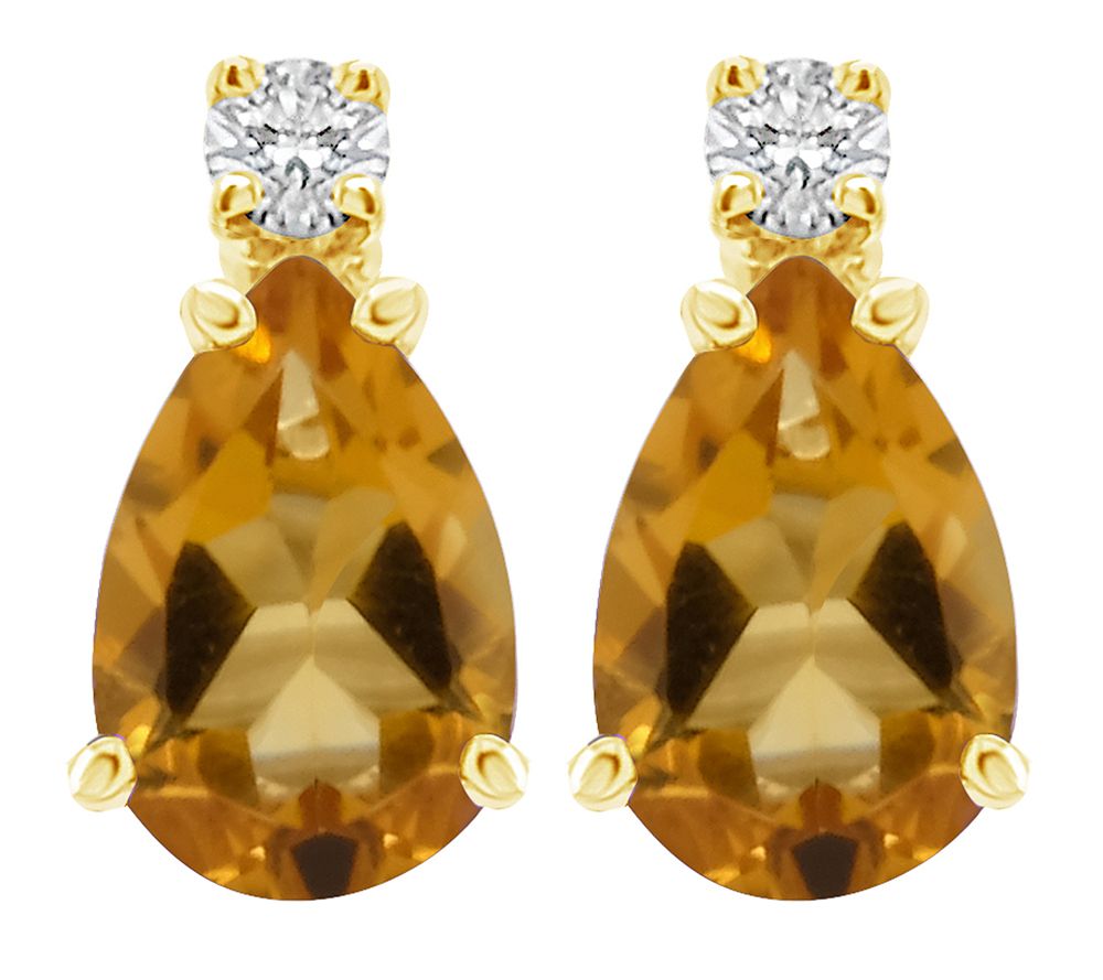A pear-shaped gemstone gives these stud earrings their color-rich style, while a diamond accent dials up the dazzle.