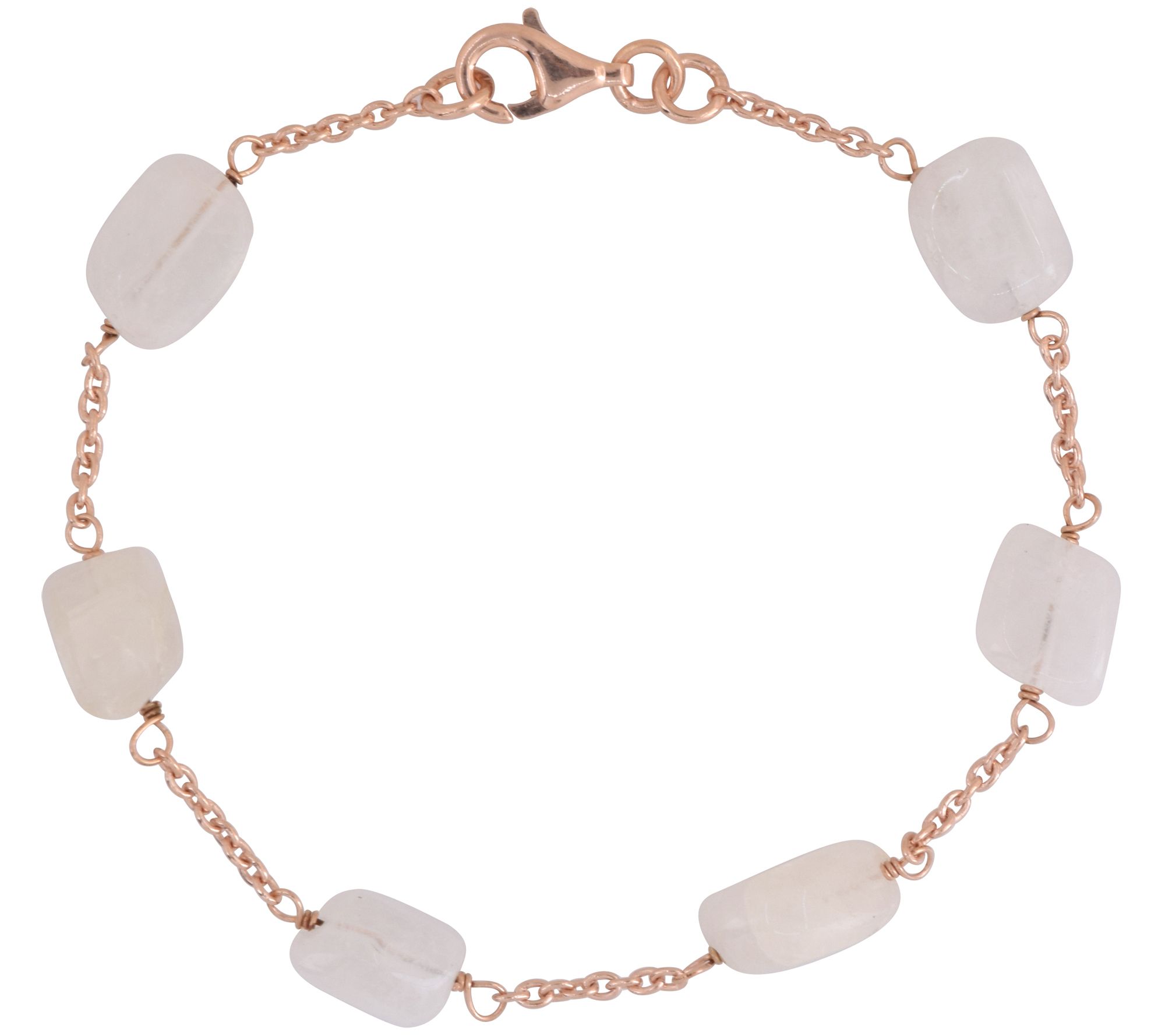 14K Rose Gold Plated Rainbow Moonstone Bead Bracelet
