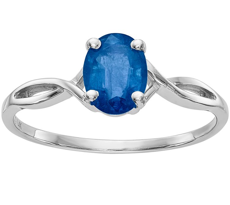 Outfitted with an oval gemstone center, this 14K white gold ring adds a pop of color to any ensemble. The crisscross pattern shoulder ups its sophistication.