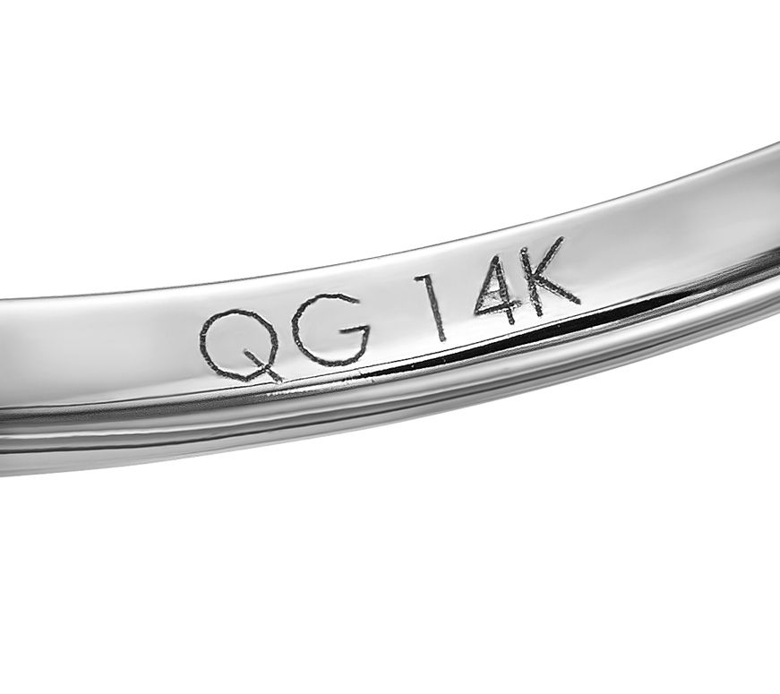 • Prong-set, oval gemstone with crisscross pattern shoulder; polished finish