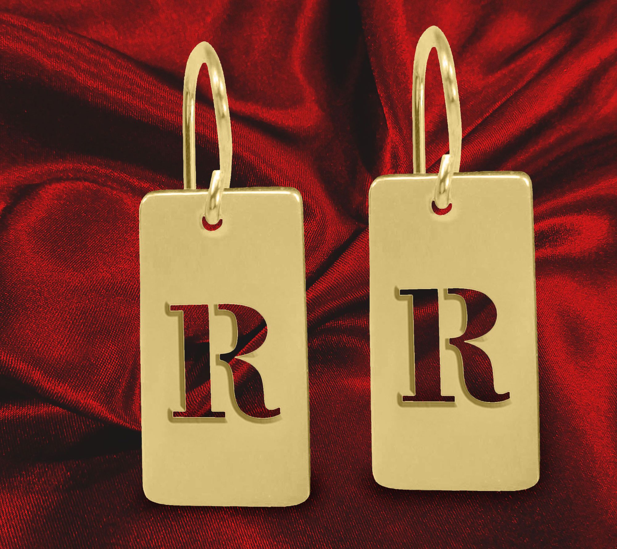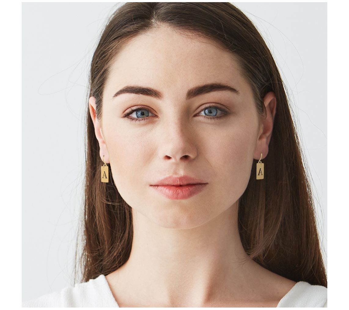 • Polished cutout initial tag earrings