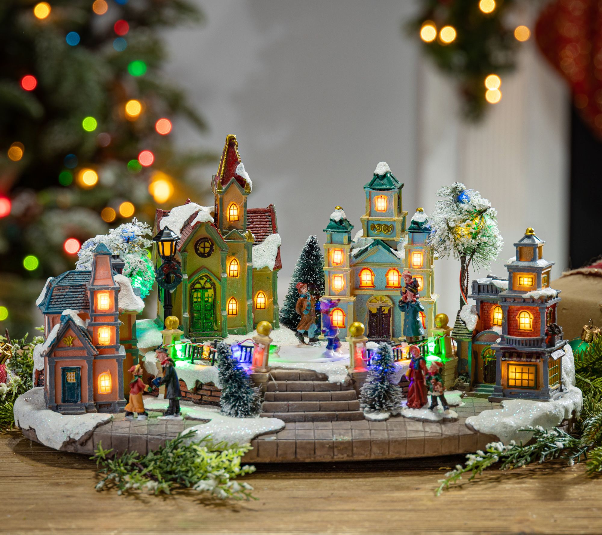 15.35"L Lighted Musical Holiday Village by Gerson Co