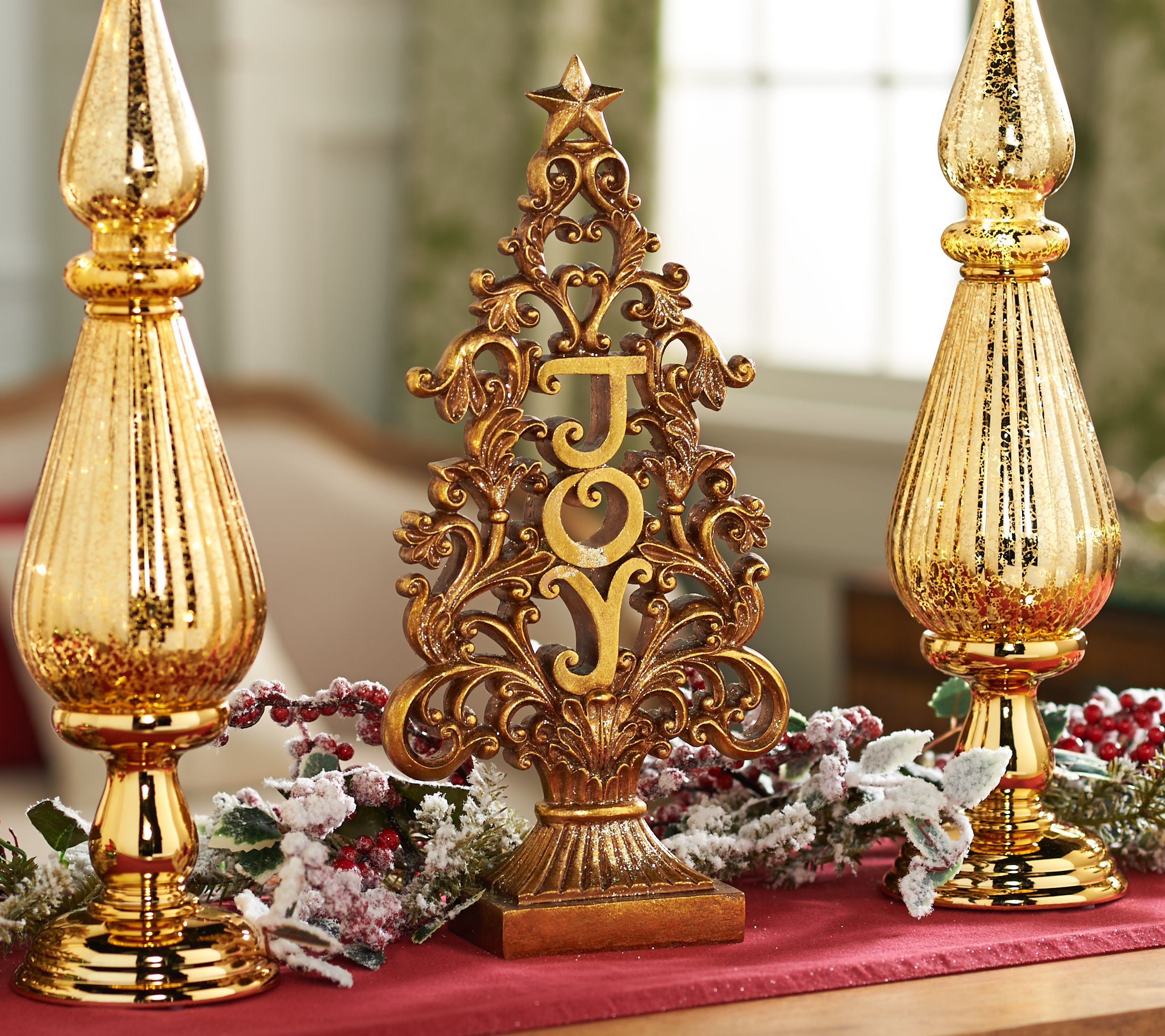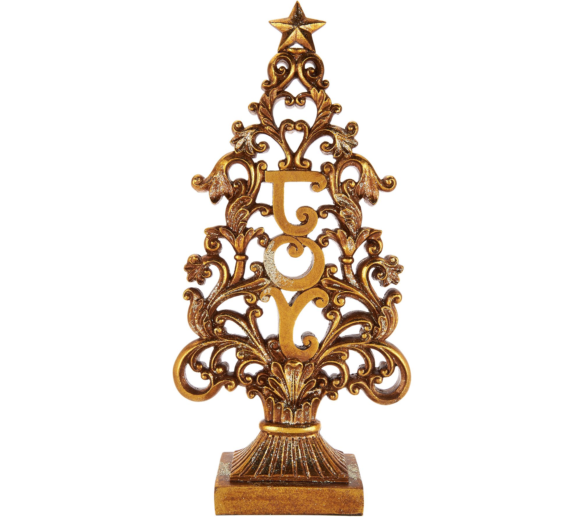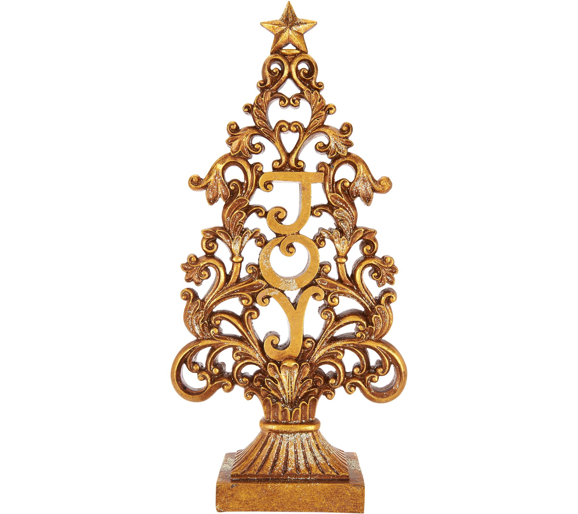 15.5" Antiqued Finish "Joy" Tree with Scroll Accents by Valerie
