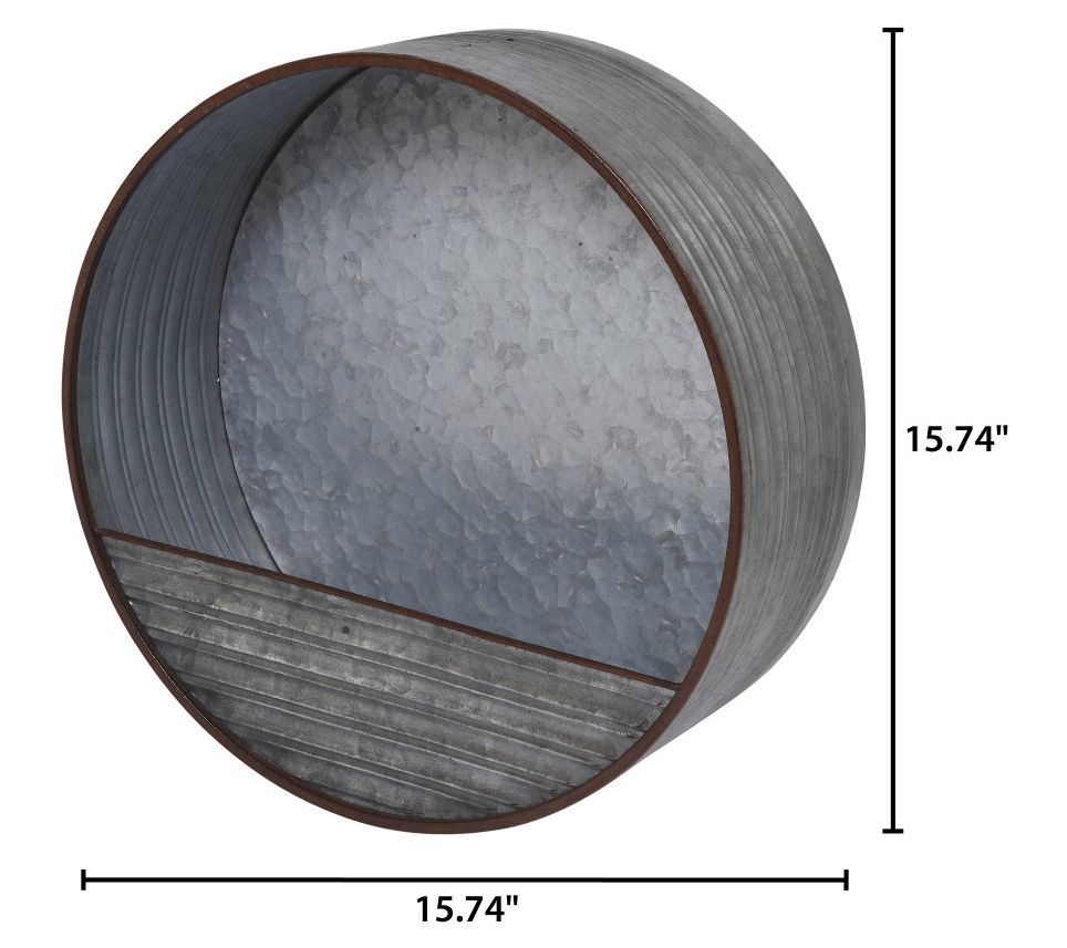 Add a touch of rustic charm to your walls with this round galvanized metal hanging wall planter. Perfect for showcasing your favorite plants, this stylish yet functional decor piece features a ribbed metal design that effortlessly enhances your living space. From Gerson International.