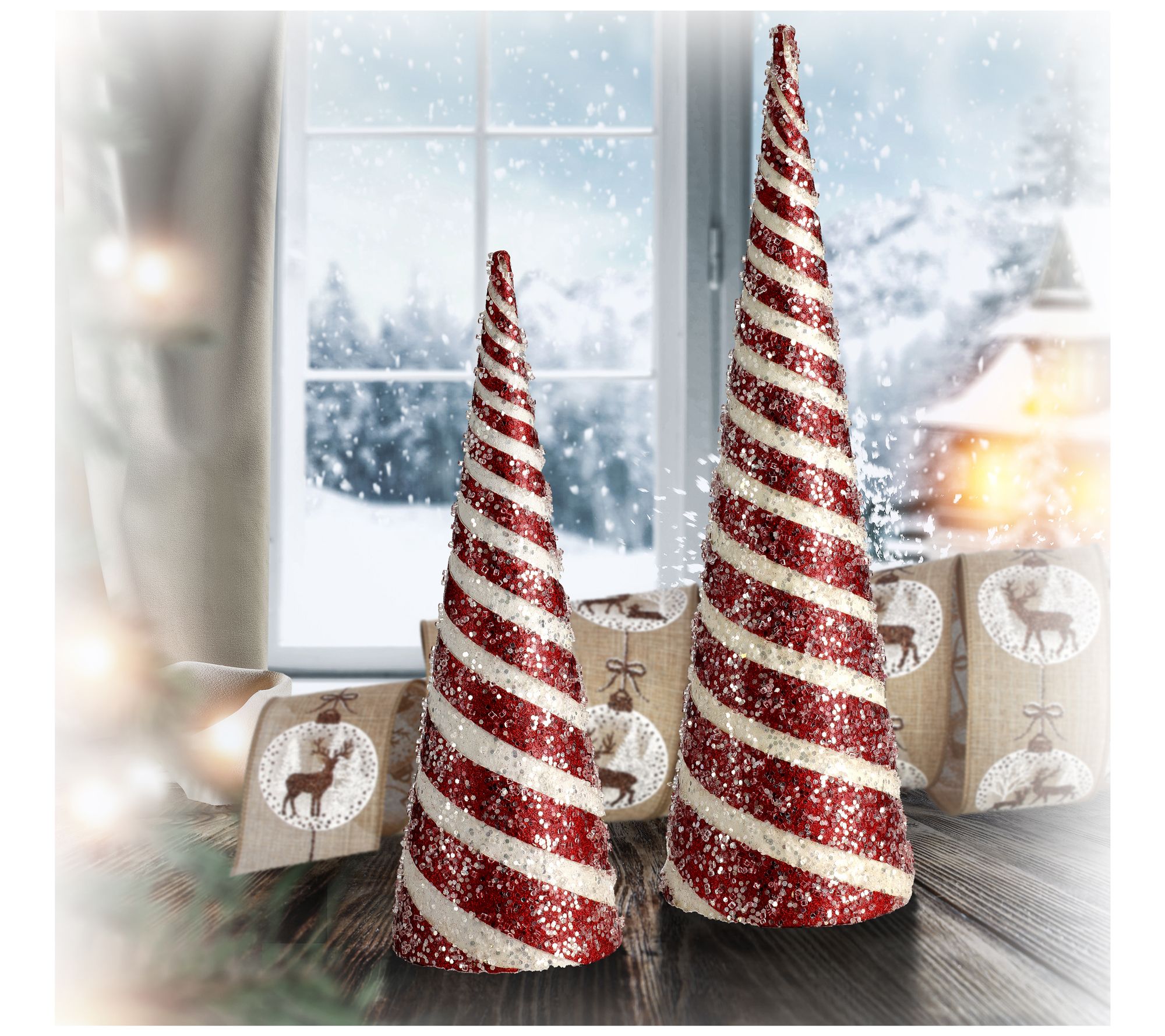Shimmering stripes and festive color bring instant cheer, whether these cheerful cones greet guests at your entryway or add flair to your holiday table. They're an effortless way to dress up any space, from a kitchen counter to a cozy window sill, offering plenty of playful spirit without the fuss. From the Valerie Parr Hill Collection.
