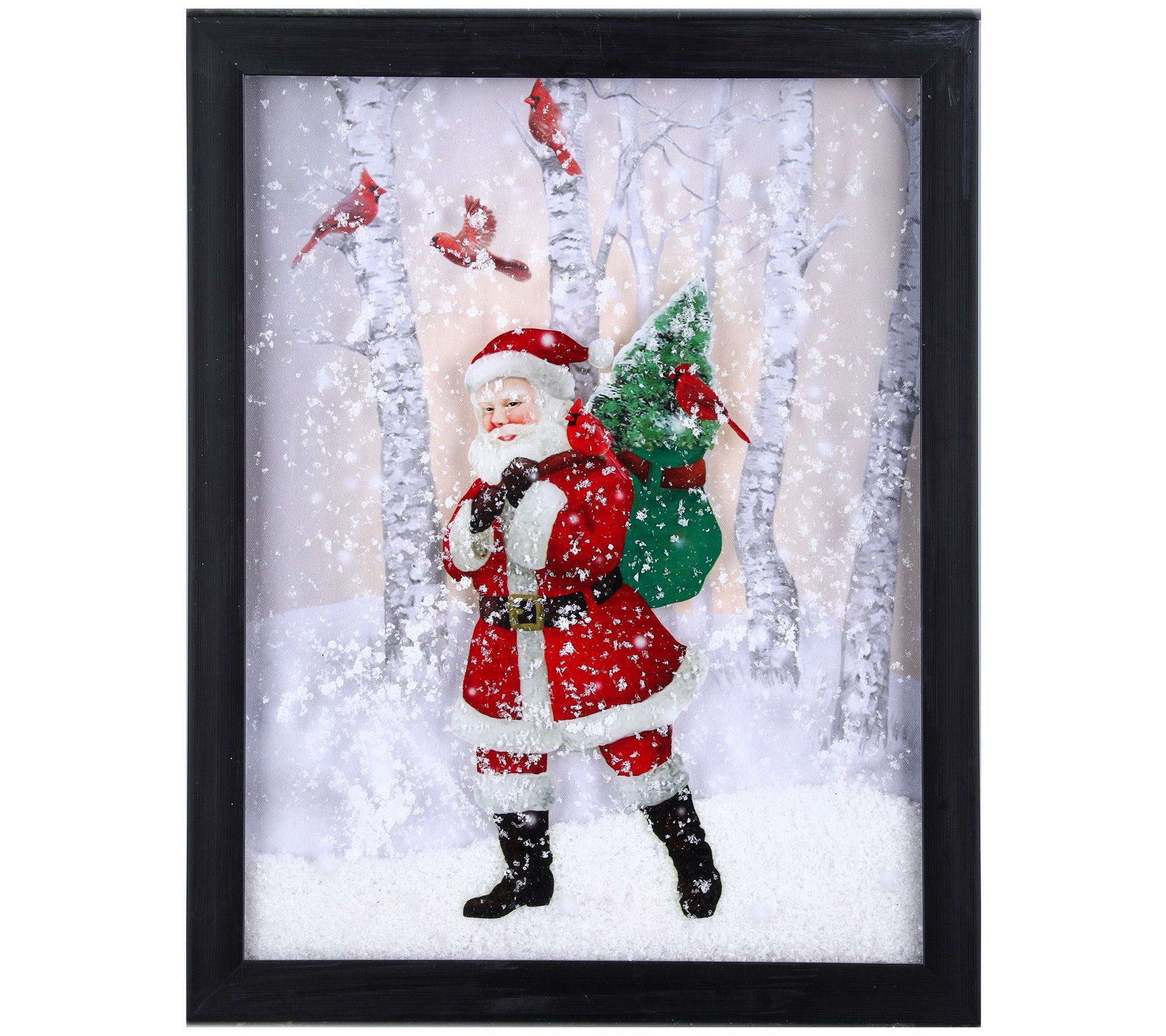 Celebrate the magic of the holiday season with this wonderful 3D Santa and cardinal scene in your home. From the Valerie Parr Hill Collection.