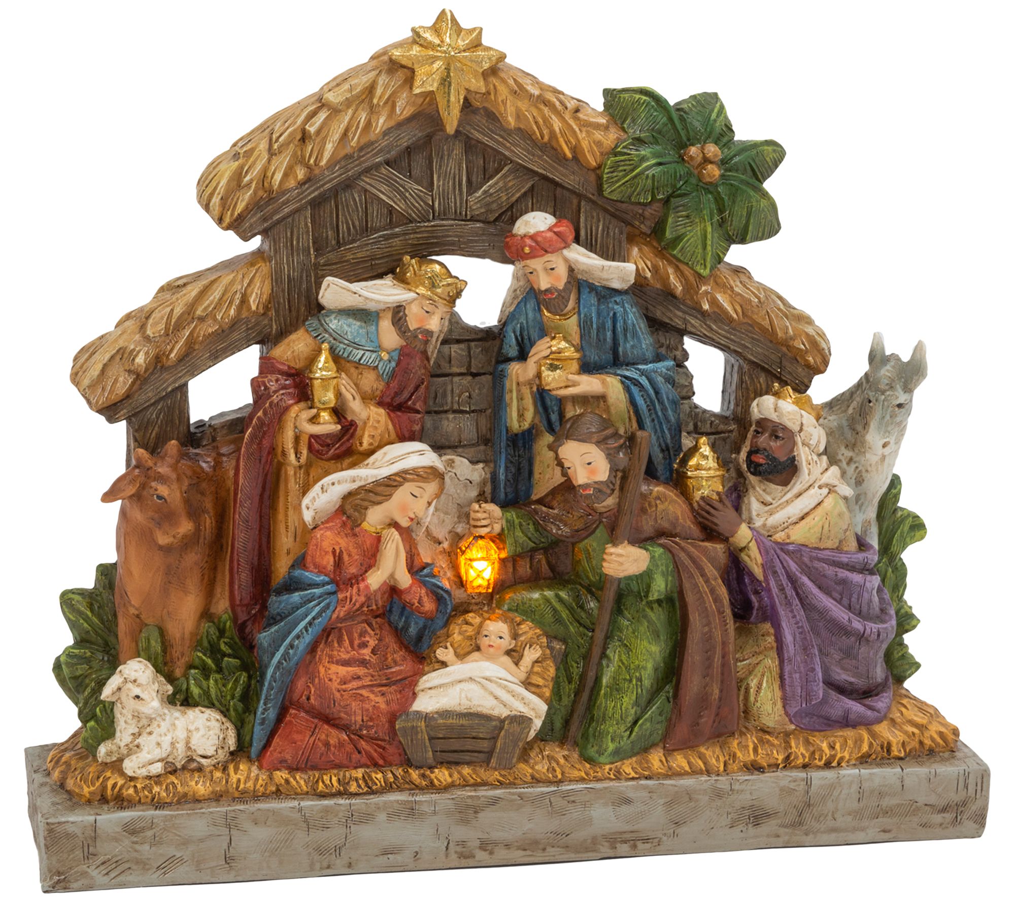 Away in a manger, this illuminated scene captures the special moment when Mary and Joseph adoringly watch over the swaddled baby Jesus. From Gerson Co.