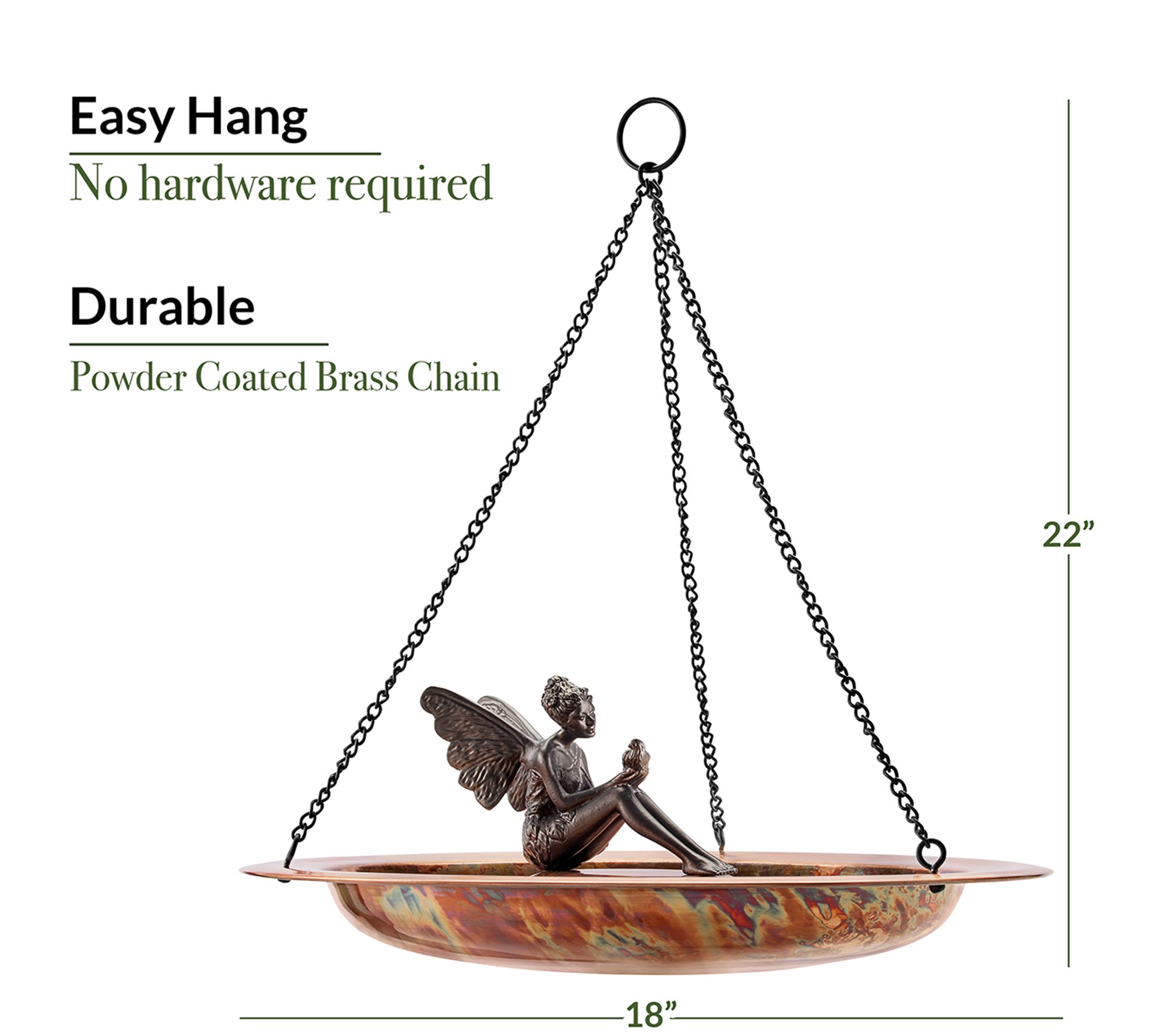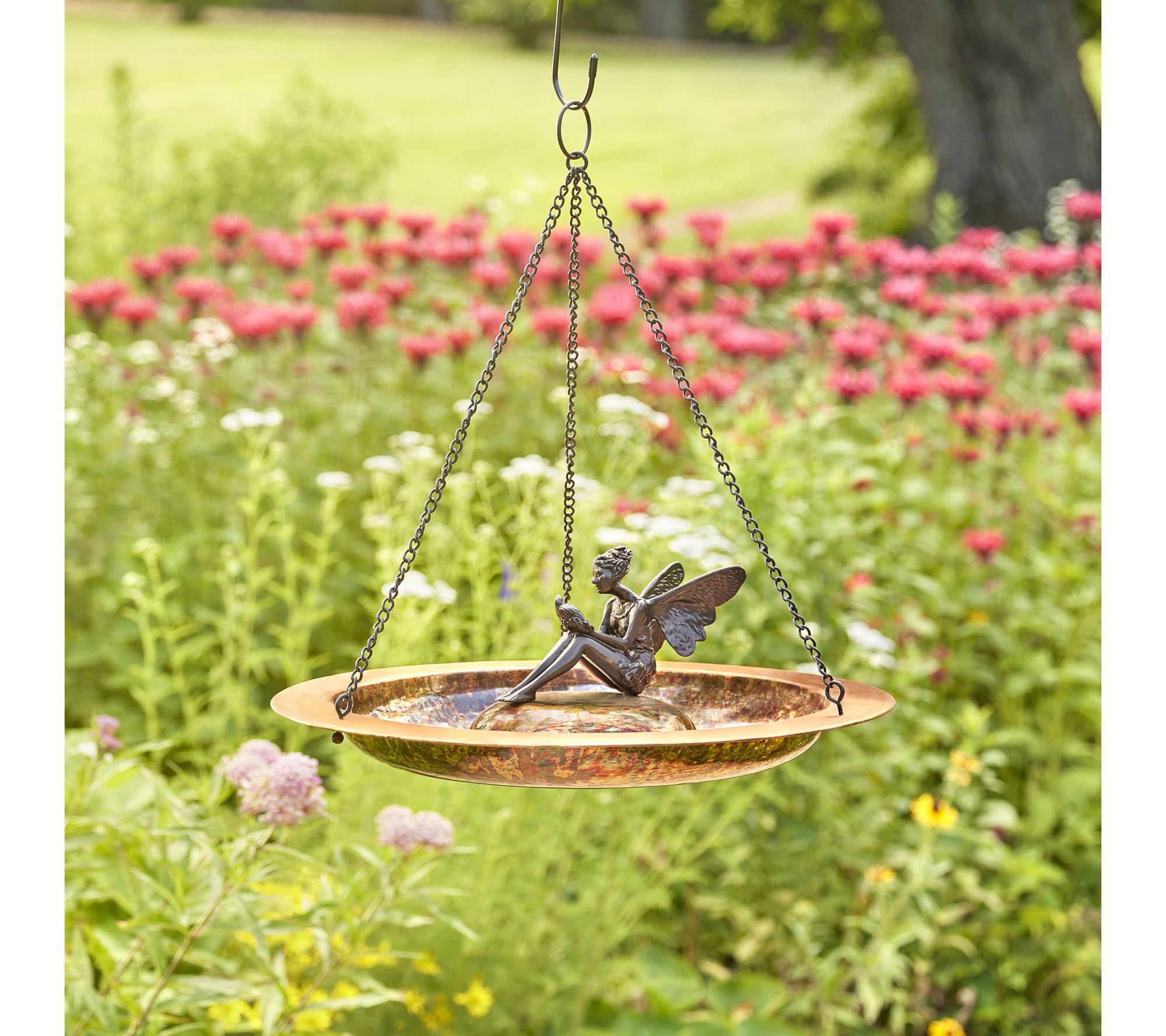 18" Hanging Fired Copper Birdbath w/ Fairy by Good Directions