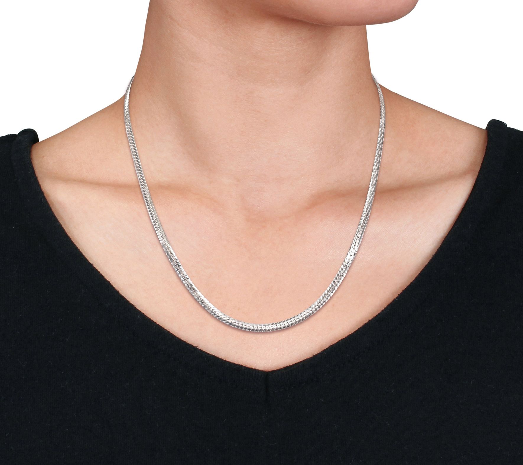A simple silhouette and incredible shine make this herringbone chain necklace an elegant finish to any ensemble.