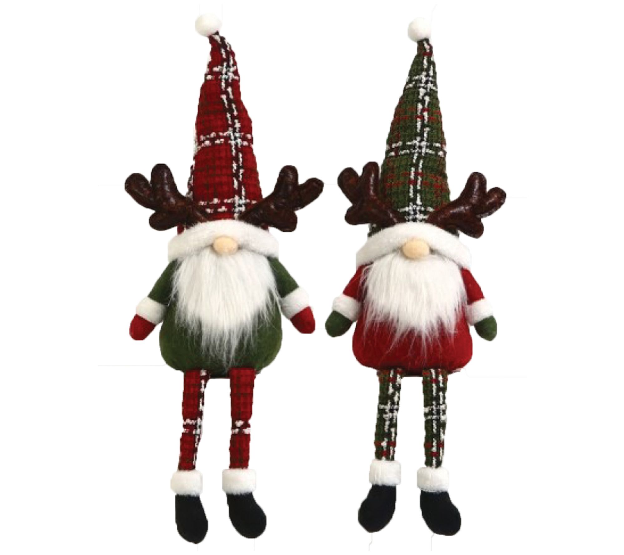 18" Santa's Workshop Sitting Reindeer Gnomes, Set of 2