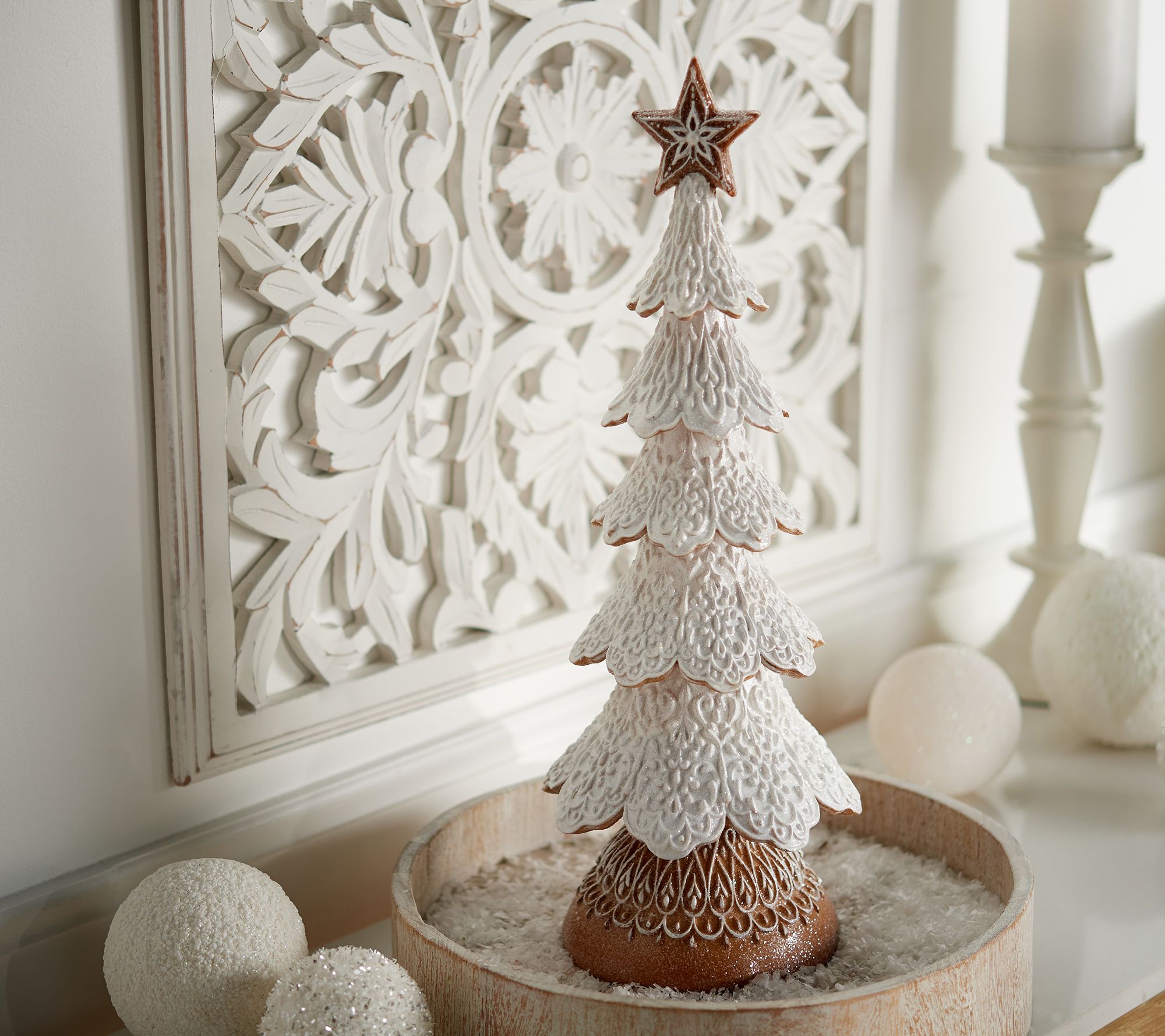 18" Snowy Gingerbread Lace Tree by Valerie