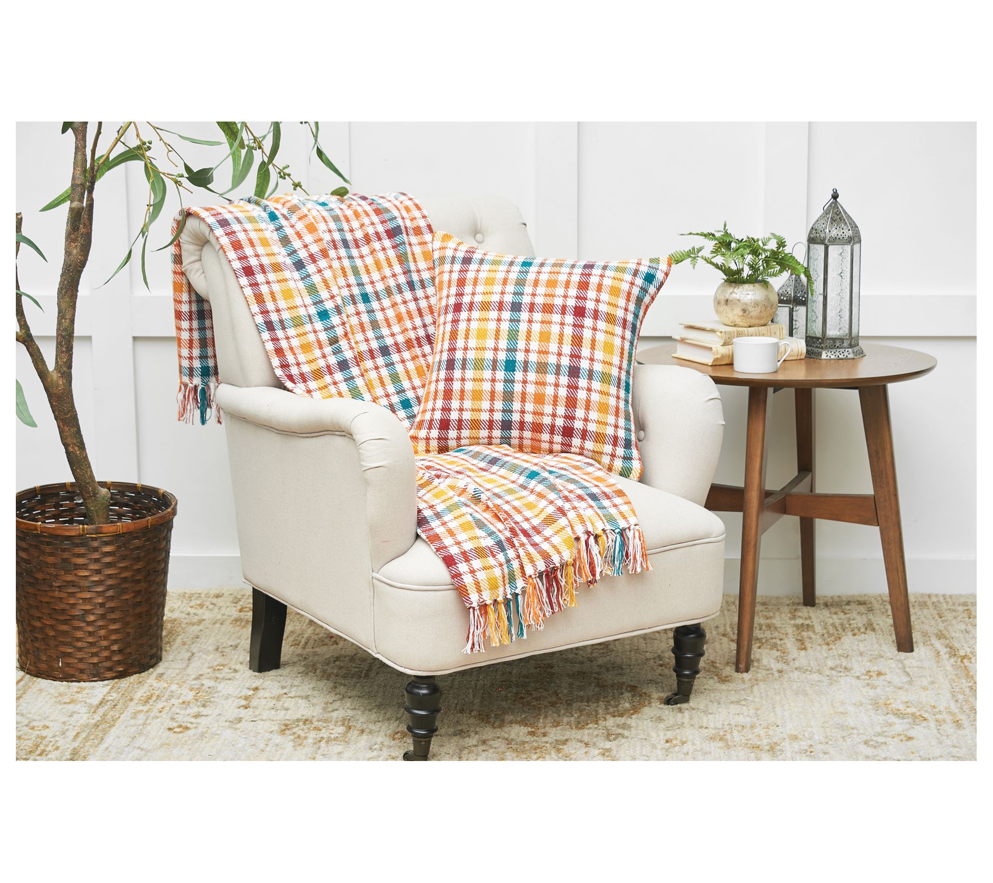 Celebrate the season of falling leaves, apple picking, and cozy sweaters with this fun decorative pillow, featuring a plaid print that brings fall magic into your home. From the Valerie Parr Hill Collection.