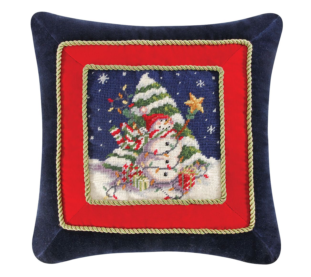 Decorate for the holiday season with our Snowman With Tree Needlepoint Pillow