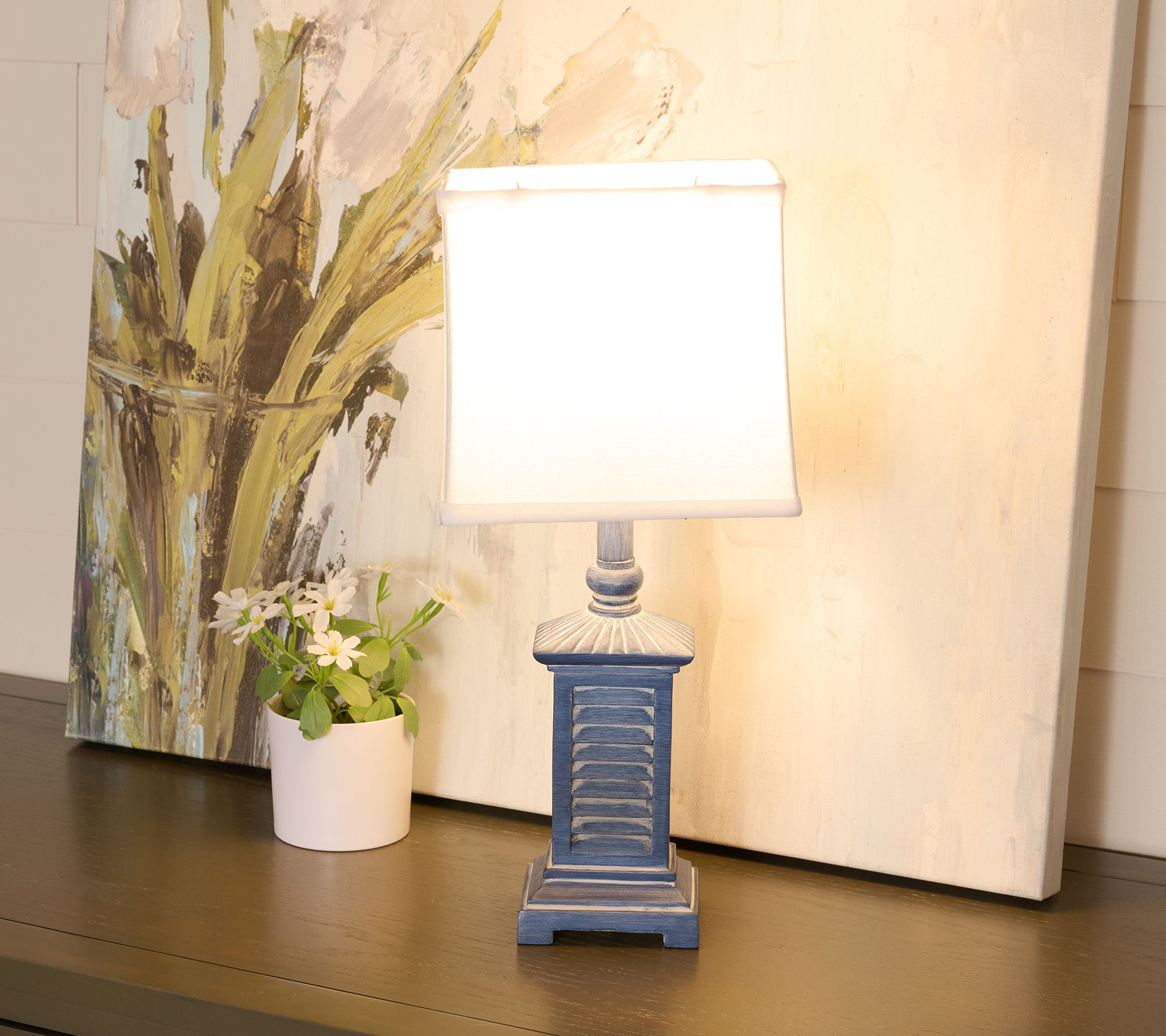 A shutter-inspired lamp base paired with a gently lined rectangular shade adds a touch of timeless charm to your favorite reading spot or living area. The included LED bulb offers soft illumination for cozy evenings in, while the lightly distressed finish gives the piece a welcoming, lived-in feel. From The Valerie Parr Hill Collection.
