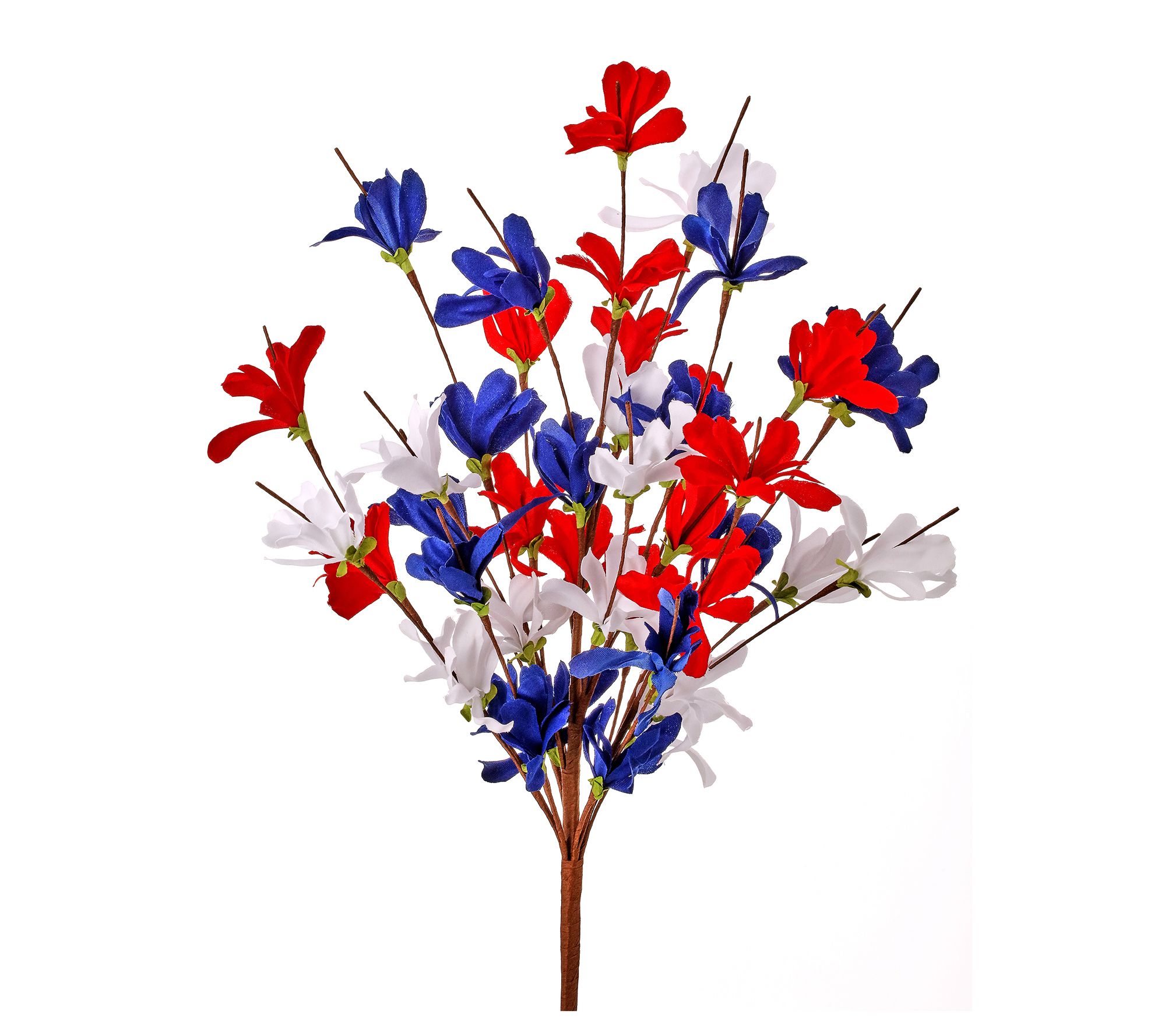 Bring the patriotic spirit to your home with the Independence azalea bush. Featuring vibrant red, white, and blue lifelike azalea blooms, this piece is perfect for adding a touch of natural beauty to your home, office, or event decor. Its full, lush design creates an eye-catching focal point that will impress your guests. From the Valerie Parr Hill Collection.