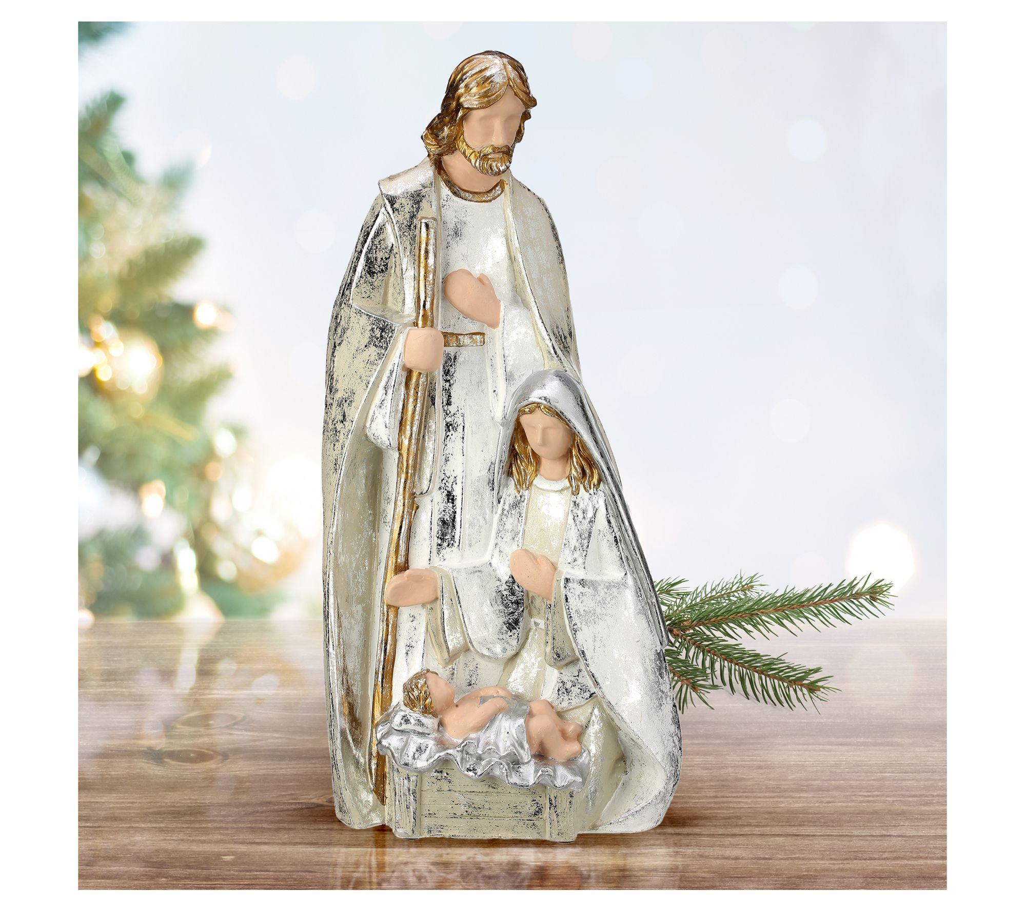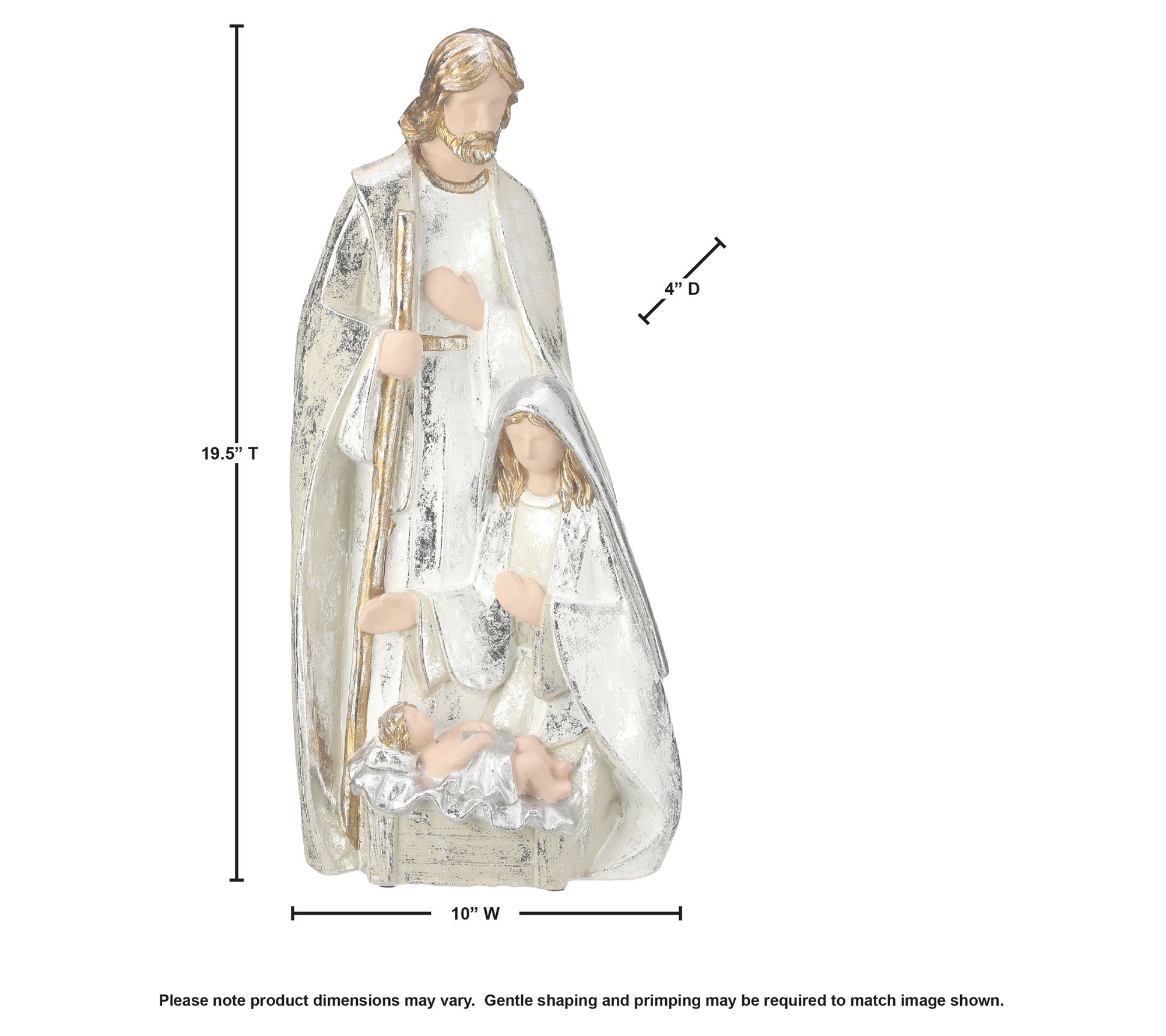 Celebrate the essence of the holiday season with this nativity piece by Valerie, a beautiful representation of the Christmas story. Its contemporary design, crafted from sandstone, features a unique distressed look in shades of white, gold, cream, and silver, making it an elegant addition to any space. From the Valerie Parr Hill Collection.