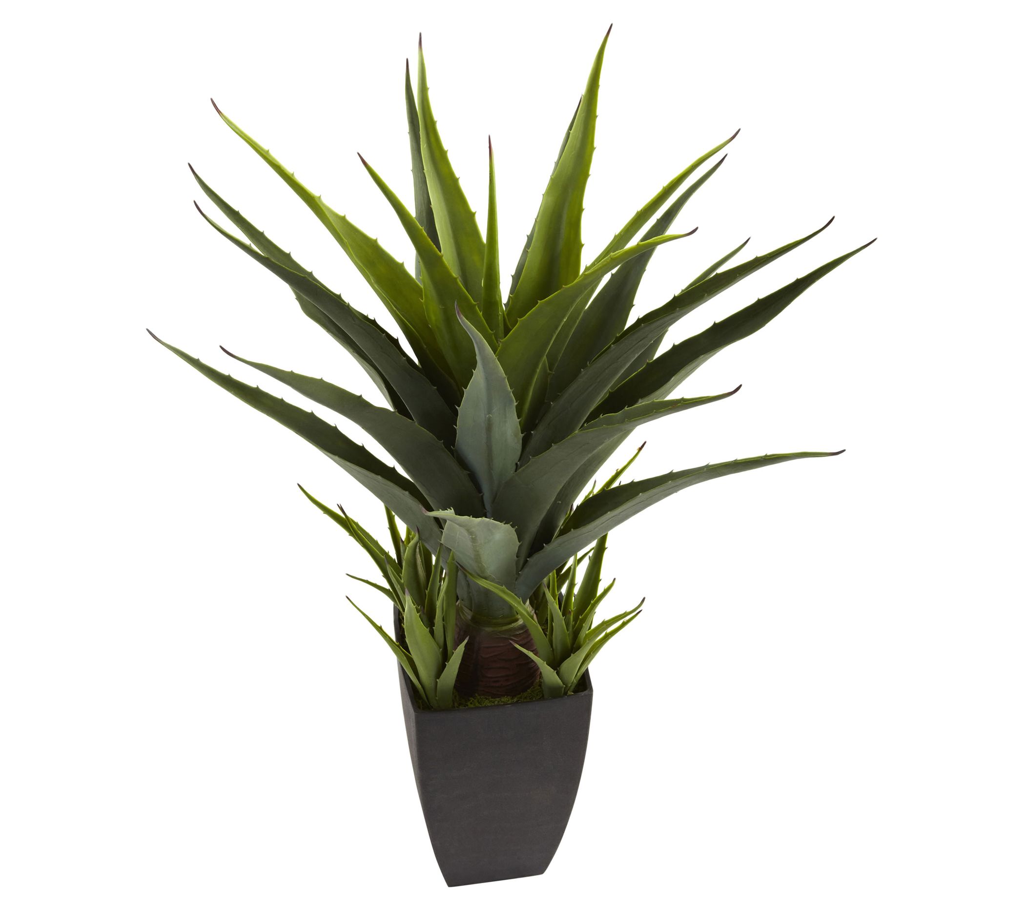 • Spiny lifelike green leaves and black planter