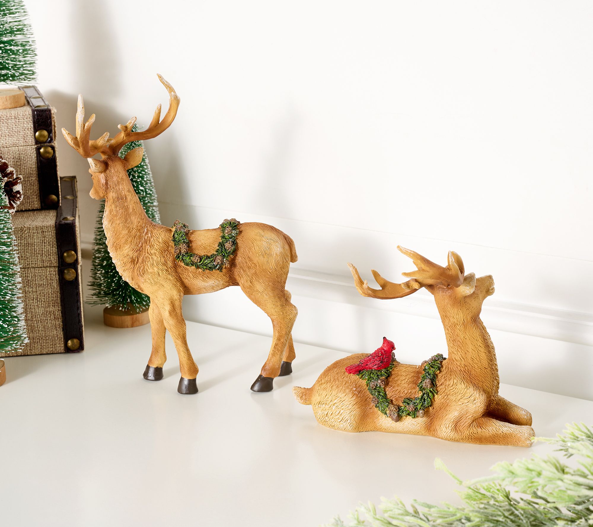 2-Piece Deer Figures with Cardinal and Garland by Valerie