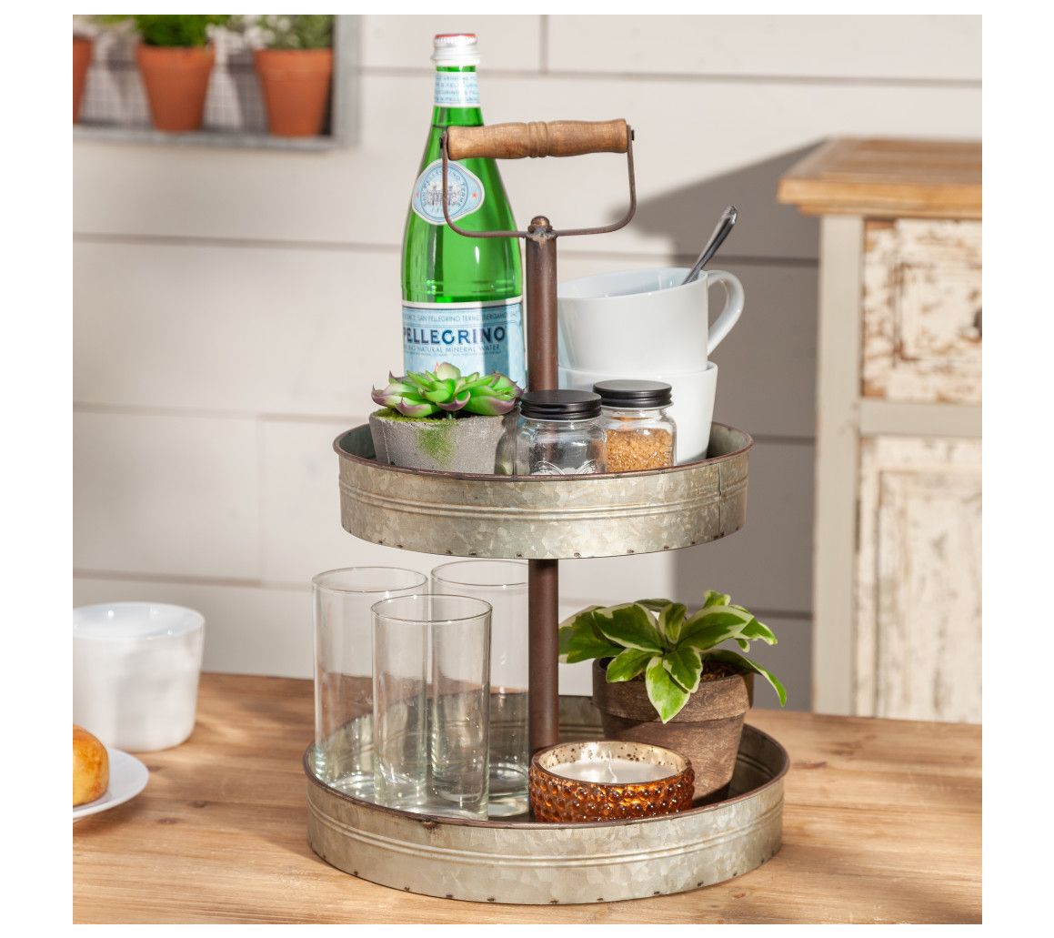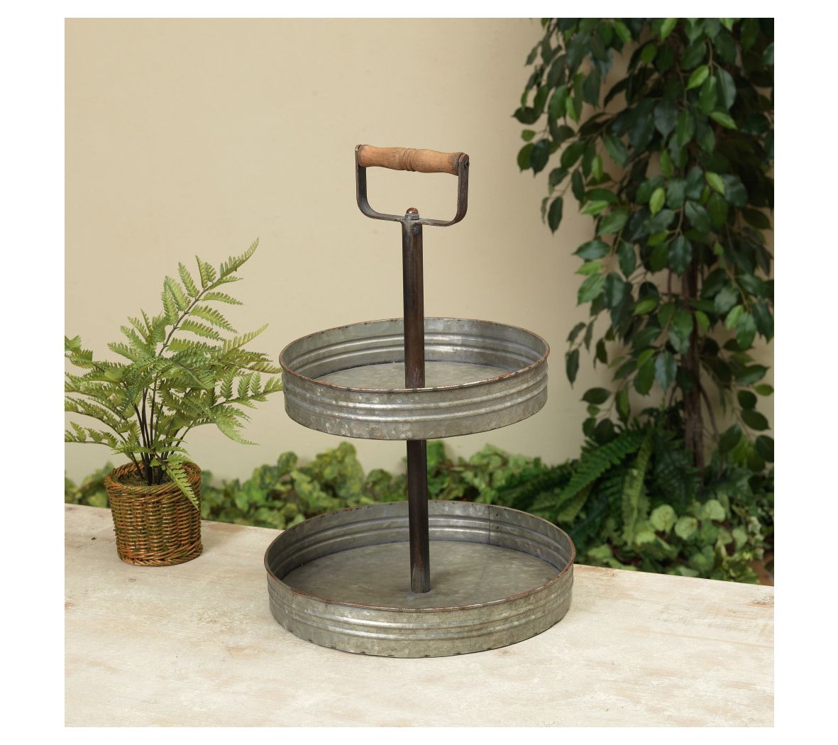 Add a touch of rustic charm to your home with this 18" high two-tier galvanized metal planter tray. Perfect for displaying plants, candles, or seasonal decor, it effortlessly enhances any space. From Gerson International.