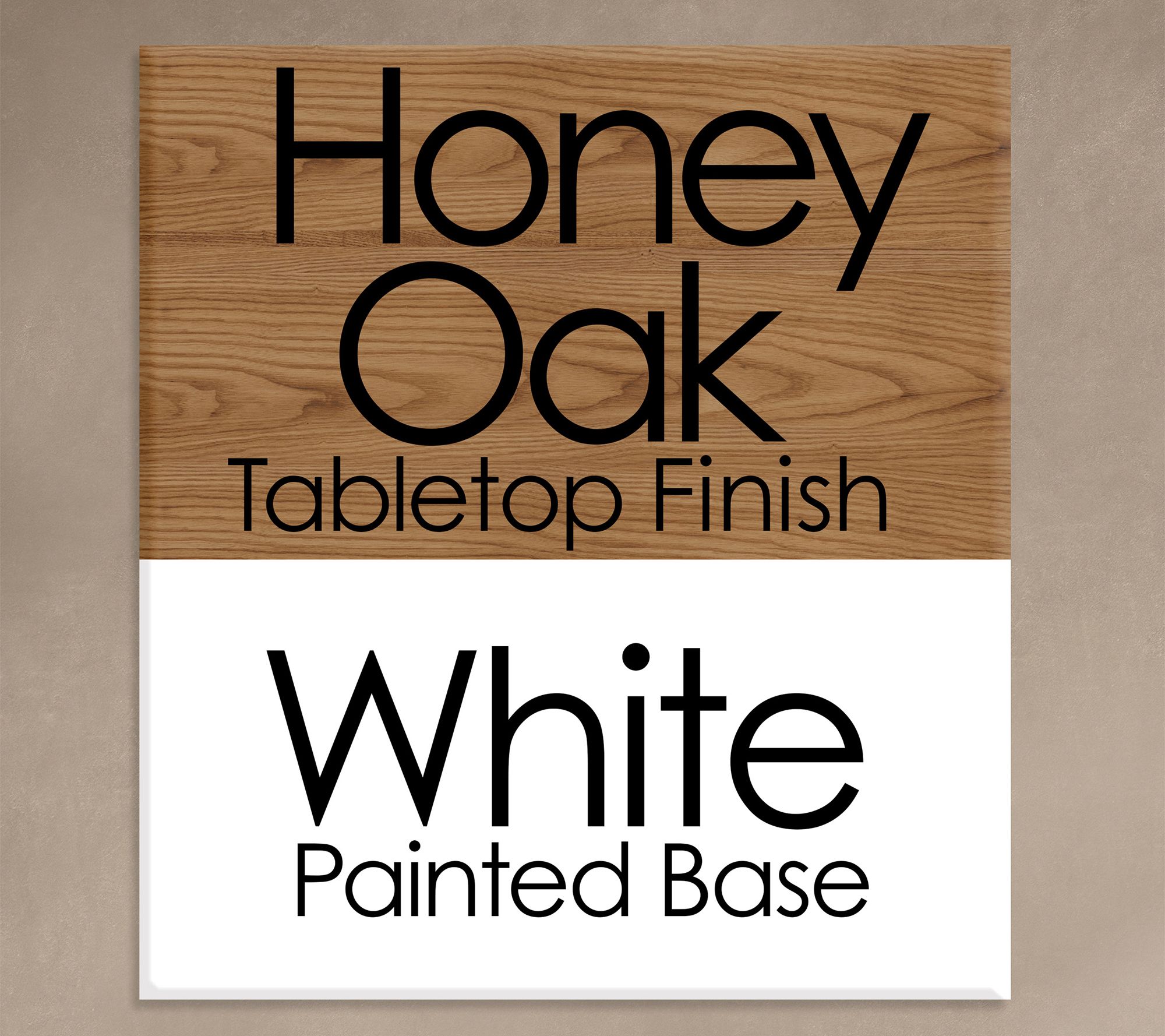 • Storage shelf; pull-out drawer with metal slides; two-tone finish