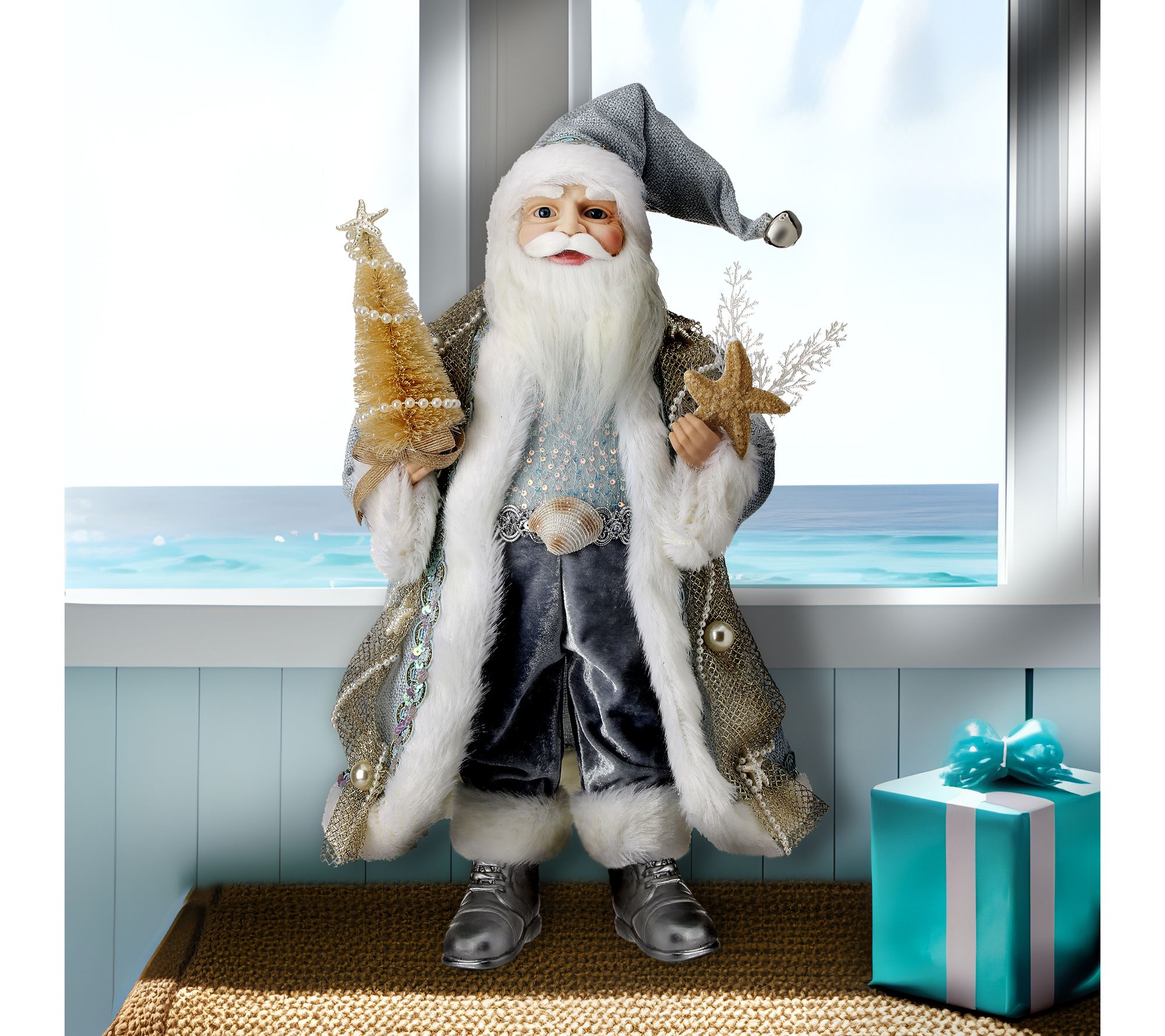 20" Fabric Ocea n Santa With Sh ells by Valerie