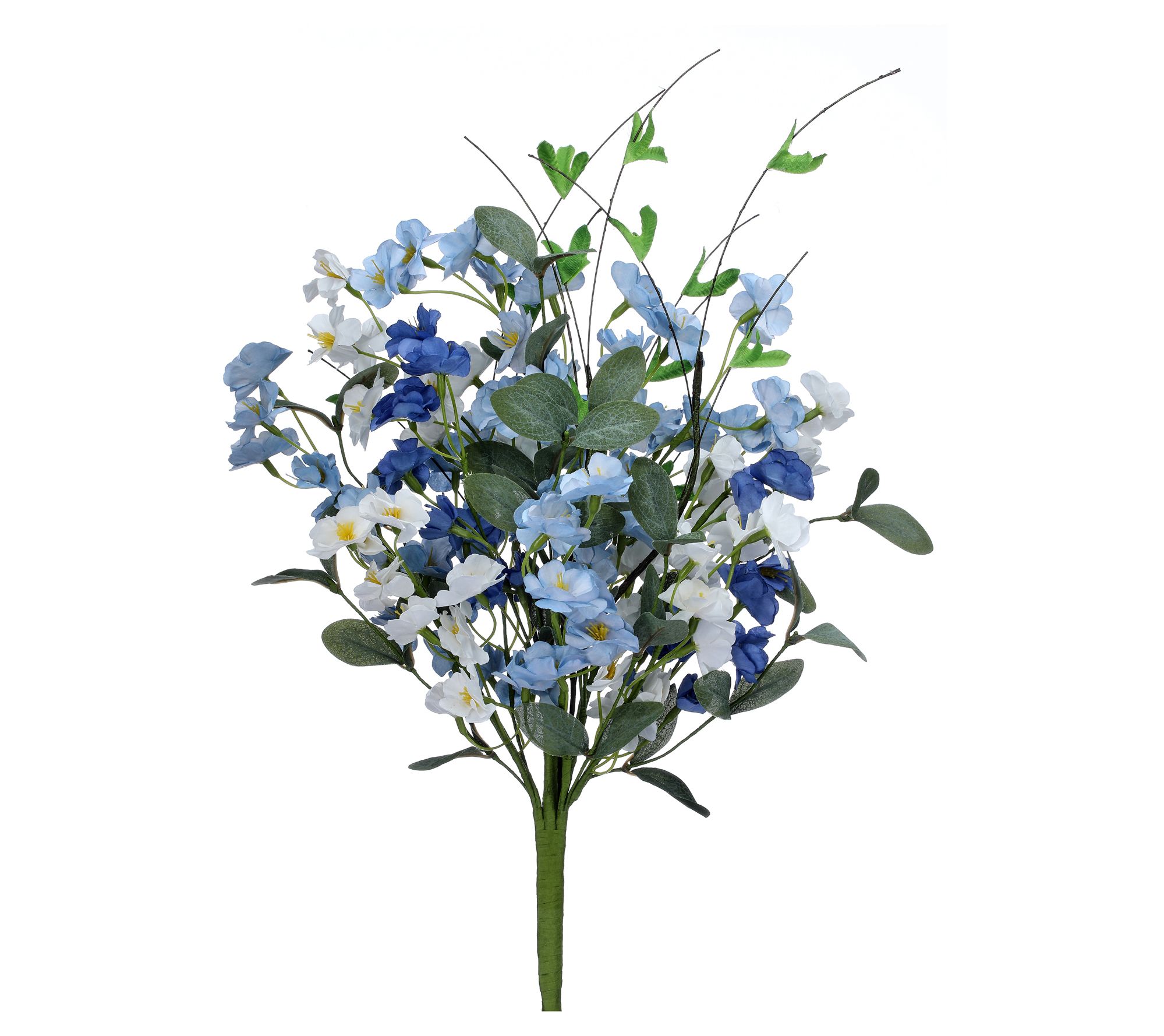 Bring the charm of a garden into your home with the 20" mini garden blossom bundle. This delightful lifelike bundle features a mix of petite, colorful blossoms and lush greenery, offering a fresh, natural look that brightens any space. Whether in a vase, floral arrangement, or craft project, enjoy the beauty of real flowers with none of the upkeep. From Valerie.