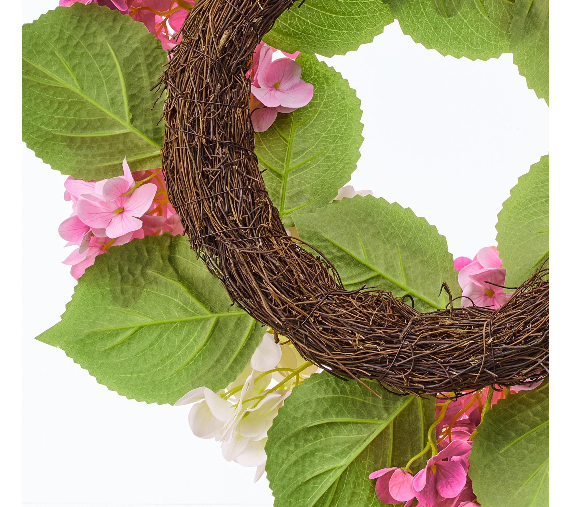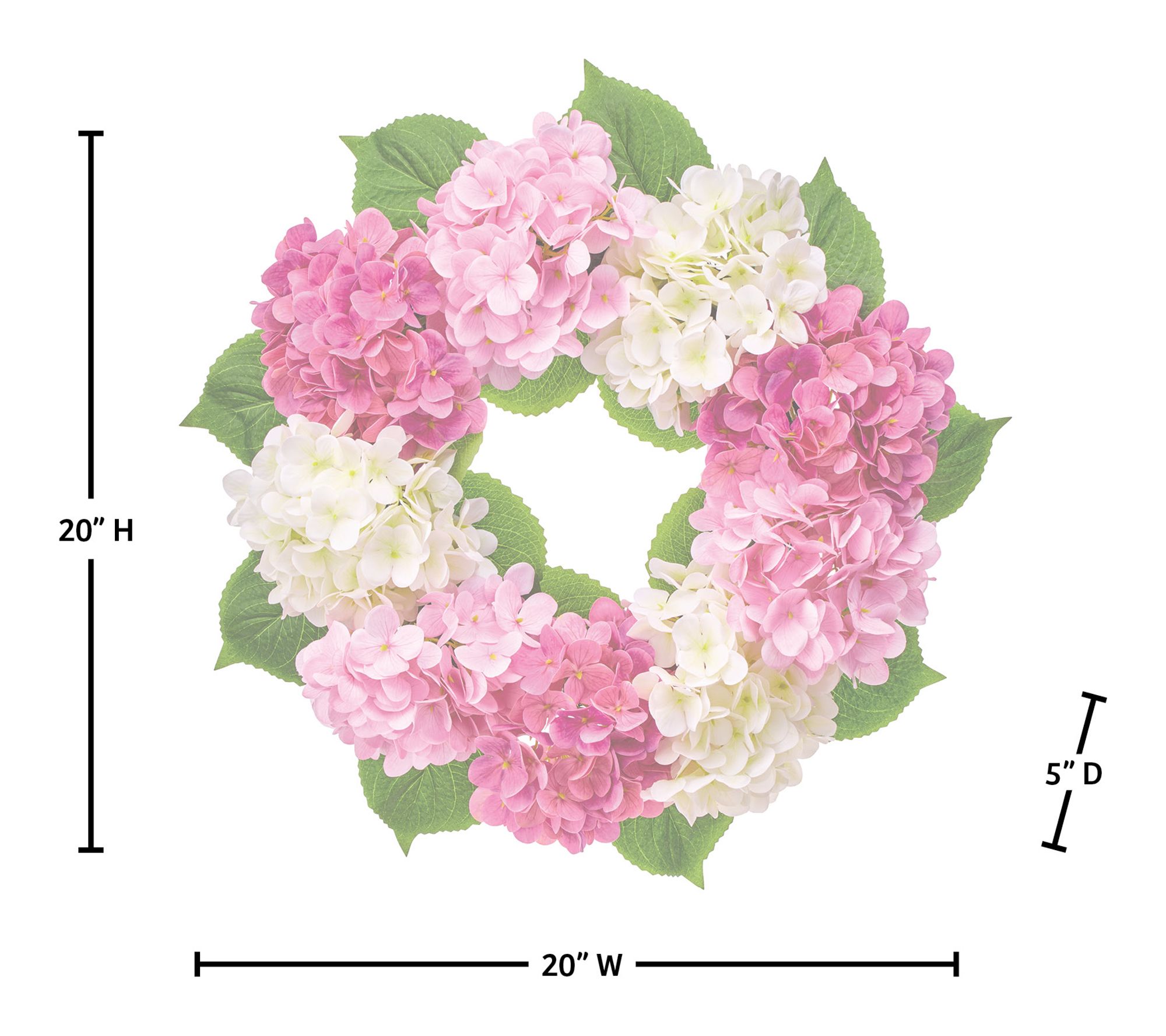 Bring elegance and vibrant beauty to your home with this 20" Natural Touch hydrangea wreath. Crafted with lifelike PE hydrangea blooms in rich hues, each flower and leaf is designed to capture the delicate texture and fullness of real hydrangeas. The lush arrangement creates a perfectly balanced, voluminous wreath that instantly brightens doors, walls, or table displays. From the Valerie Parr Hill Collection.