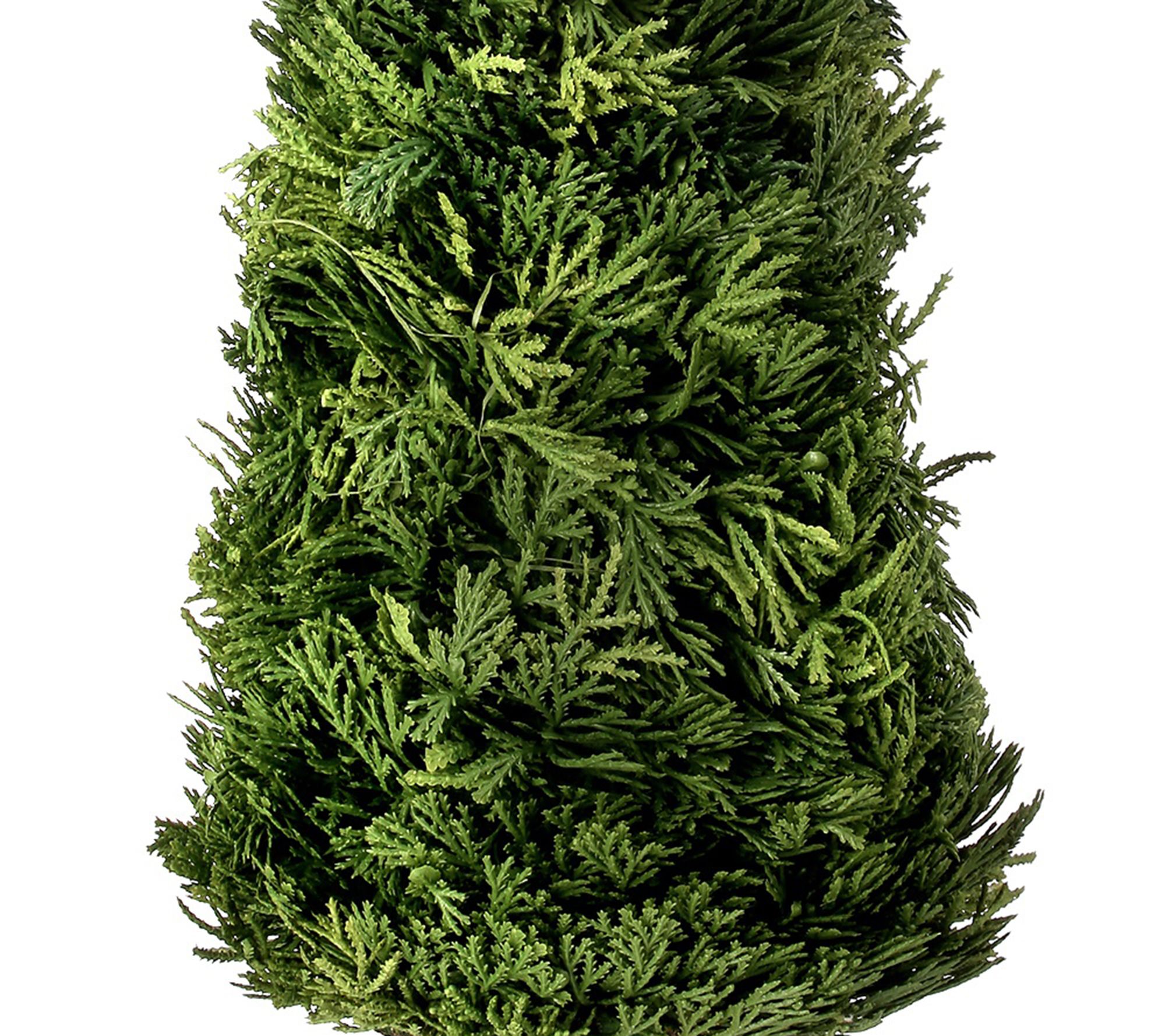 Bring the beauty of nature into your entryway, living room, or office when you have this elegant faux cedar tree that features a classic cone shape and lush lifelike branches. From the Valerie Parr Hill Collection.