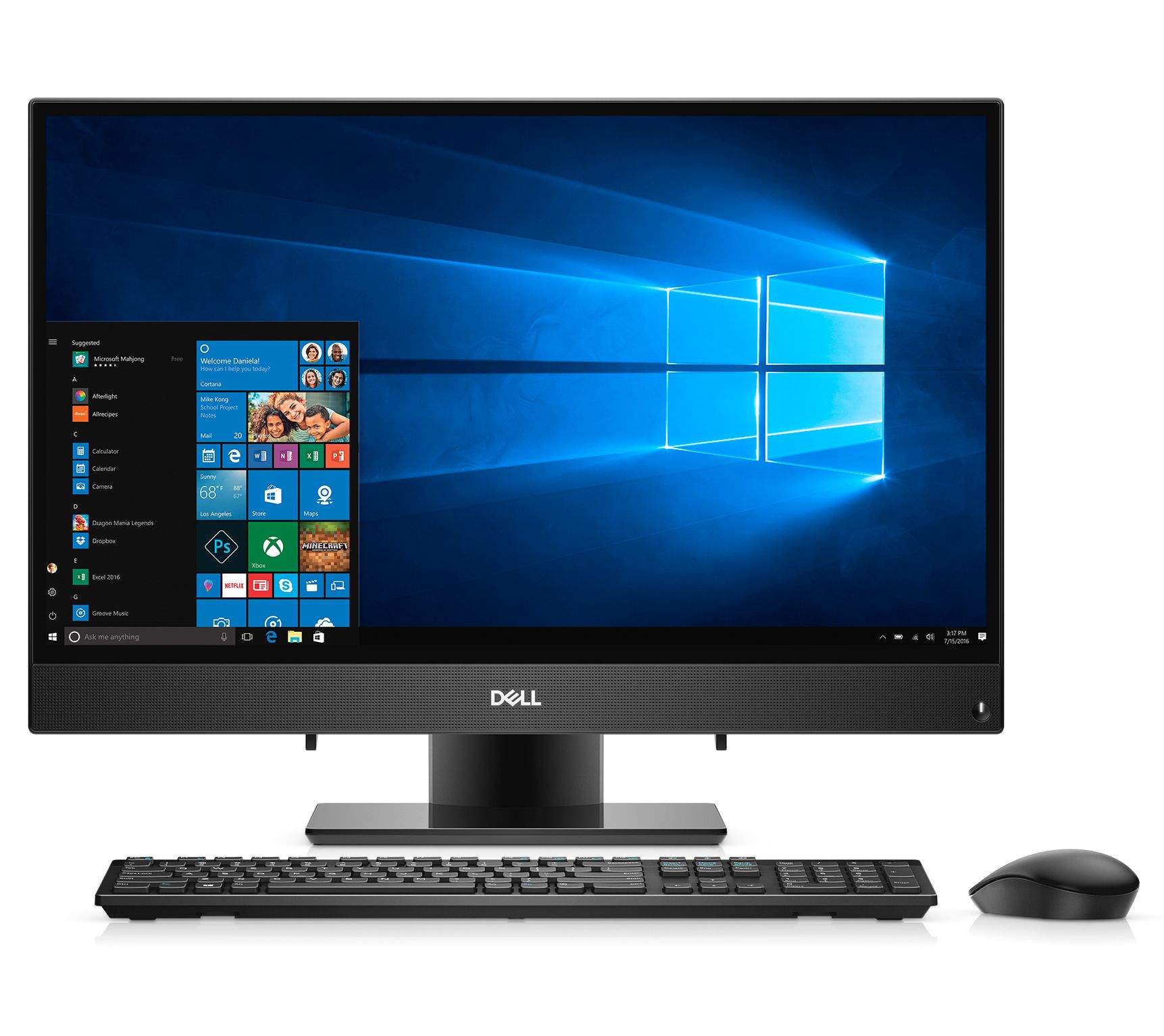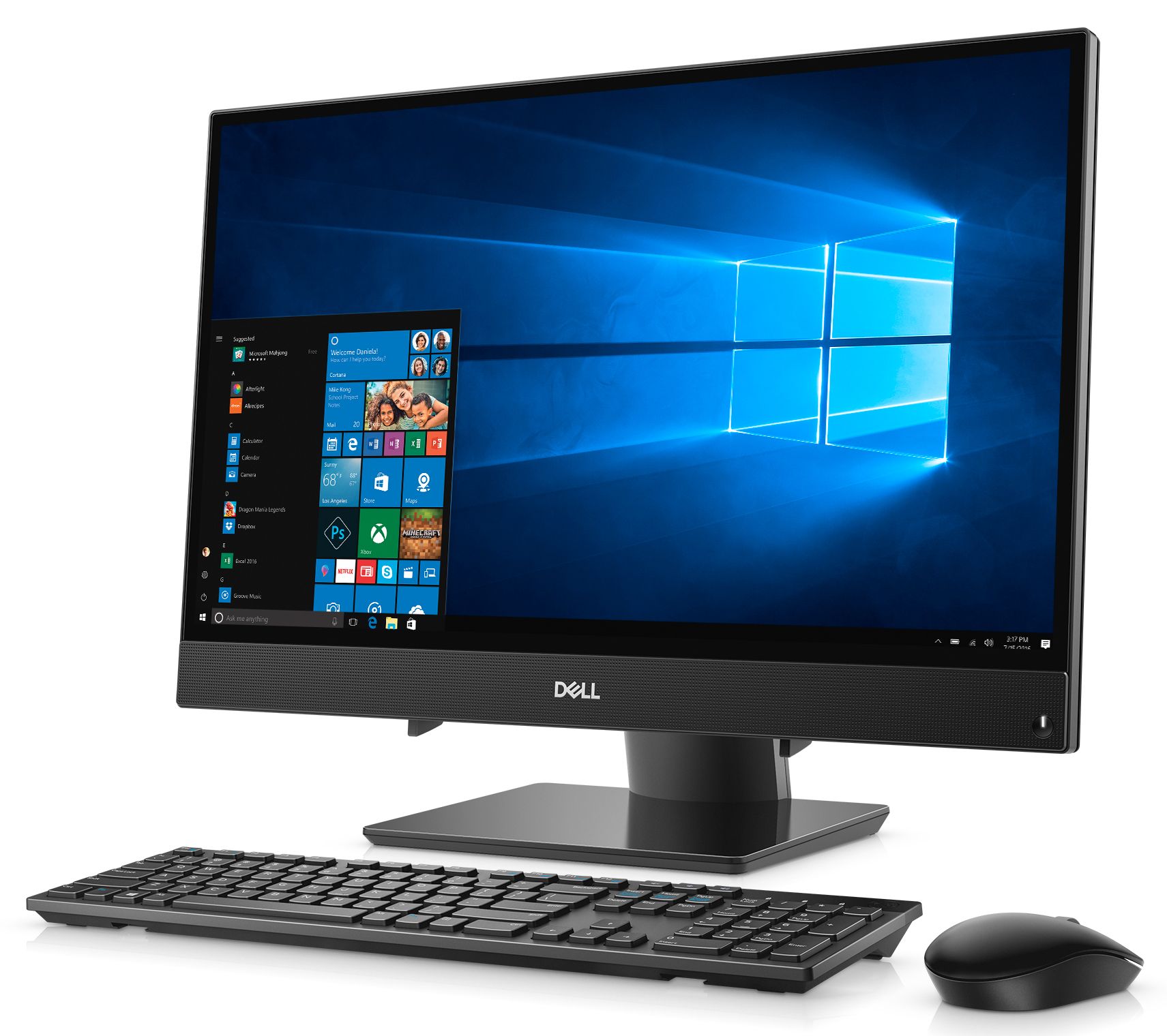 Includes Inspiron i3475-A252 all-in-one PC with wireless keyboard, wireless mouse, and power cord; and voucher