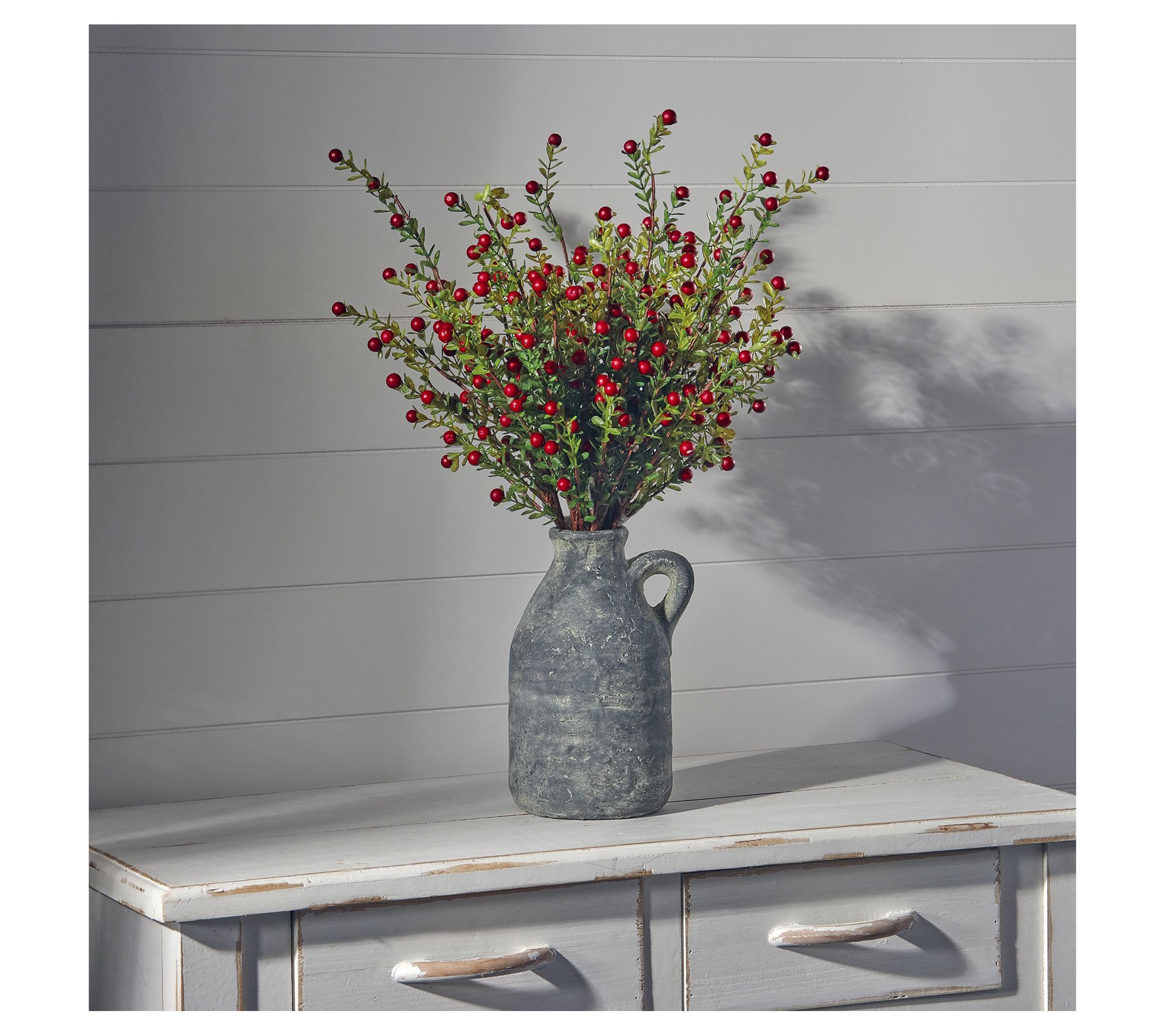 Create a cozy Christmas-infused atmosphere with these mini cranberry leaf sprays splashed throughout your decor. The lifelike sprays feature faux red cranberries and intricately designed leaves that replicate the natural beauty of cranberry foliage. Perfect for a decorative vase, Christmas tree, or holiday table setting. From the Valerie Parr Hill Collection.