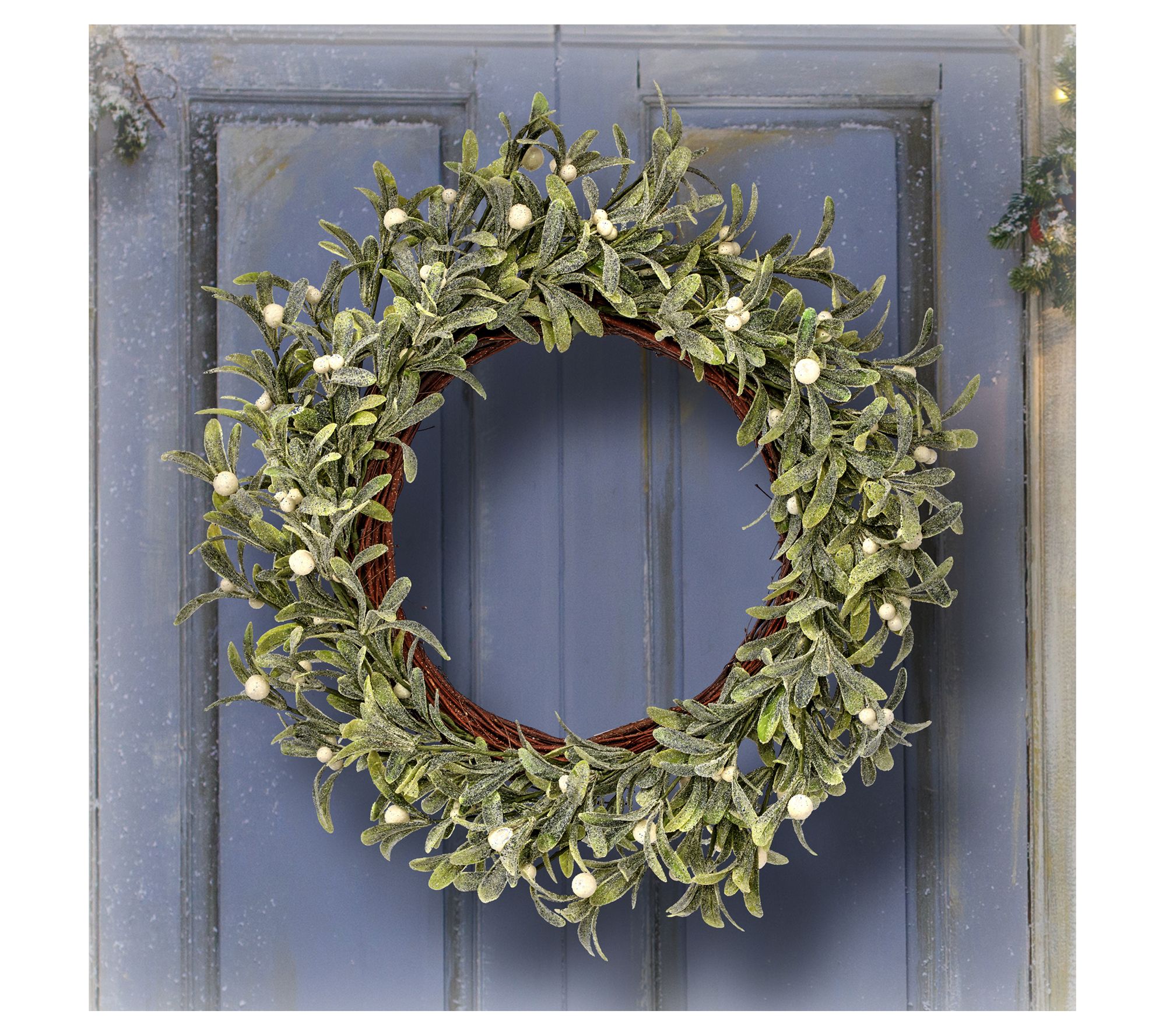 22" Frosted Waterproof Mistletoe Berry Wreath by Valerie