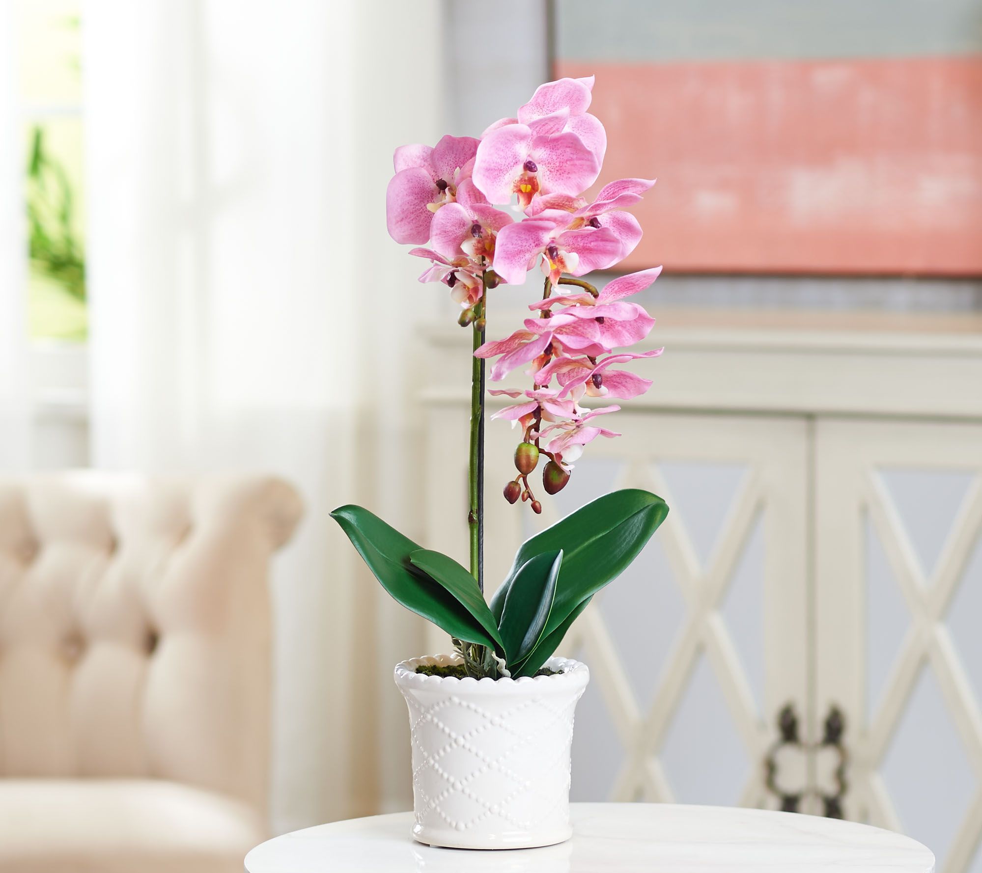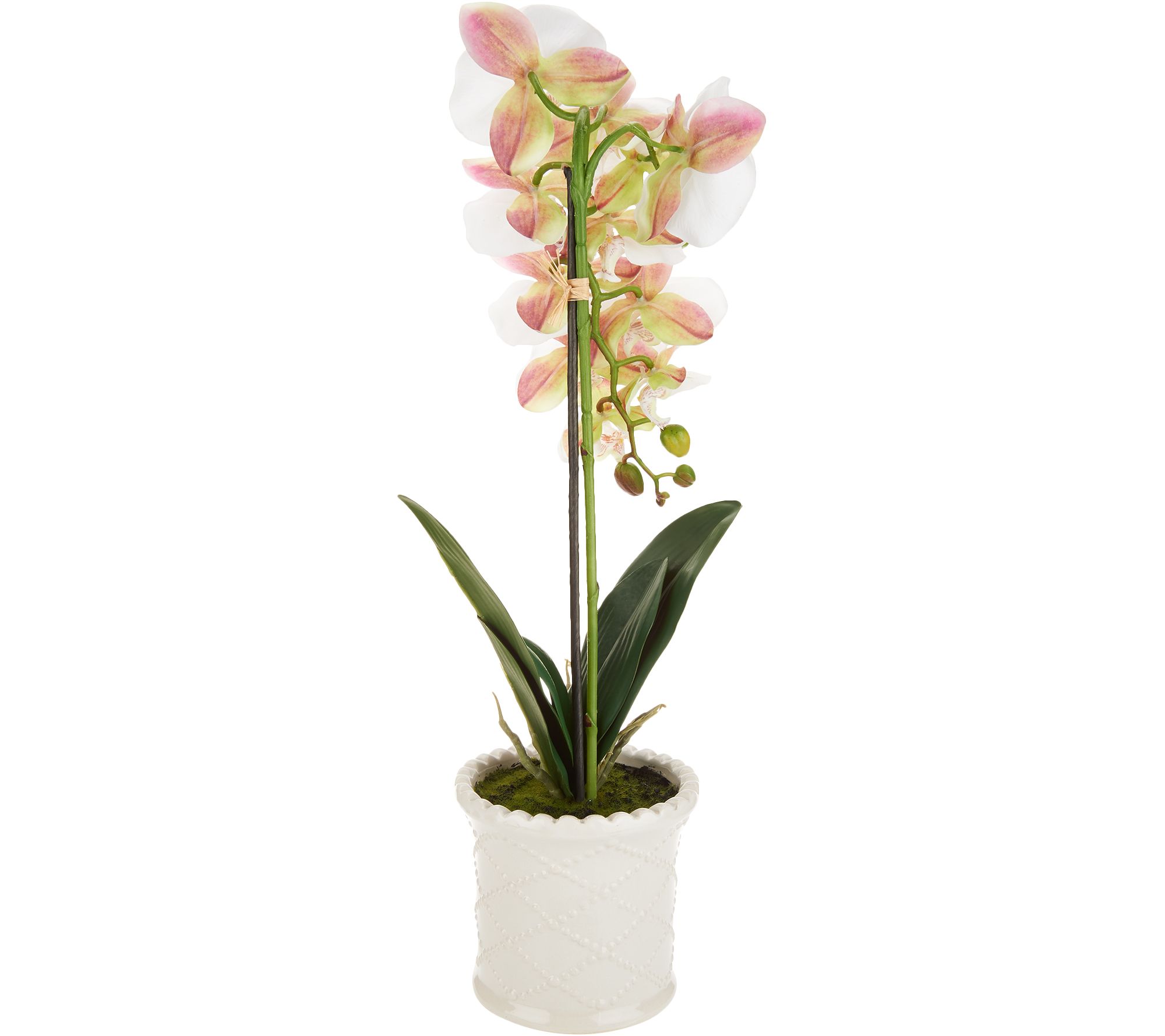 Blooming with maintenance-free beauty, this likelike phaleanopsis orchid looks great all year long--no watering needed! From the Valerie Parr Hill Collection.